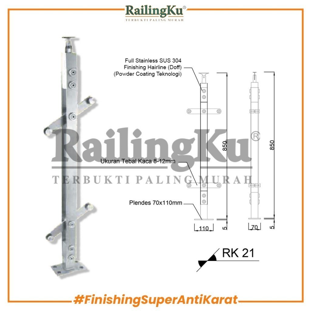 Railing Tangga Stainless Plate Minimalis Railingku [JUARA] RK 21 Railing Anti Free Penutup Dynabolt | Garansi ( kembal