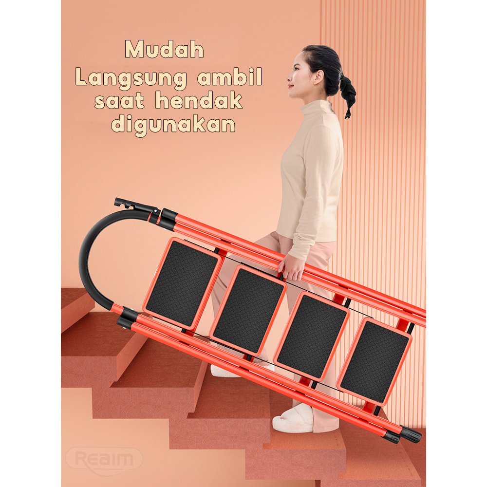 Reaim 2M Tangga Lipat Rumah Besi Lipat 7/8 Step/Tangga Lipat Aluminium 7/8 Step Premium untuk Rumah Tangga