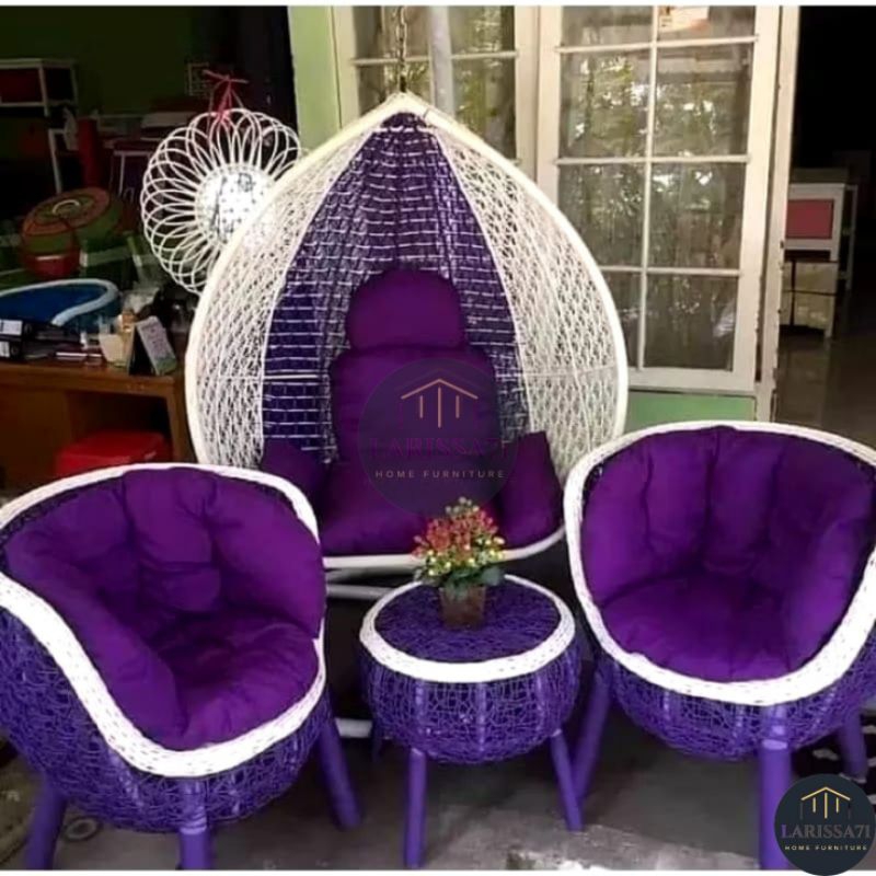 Set Ayunan Gantung Dan Kursi Teras Brekele Rotan Sintetis