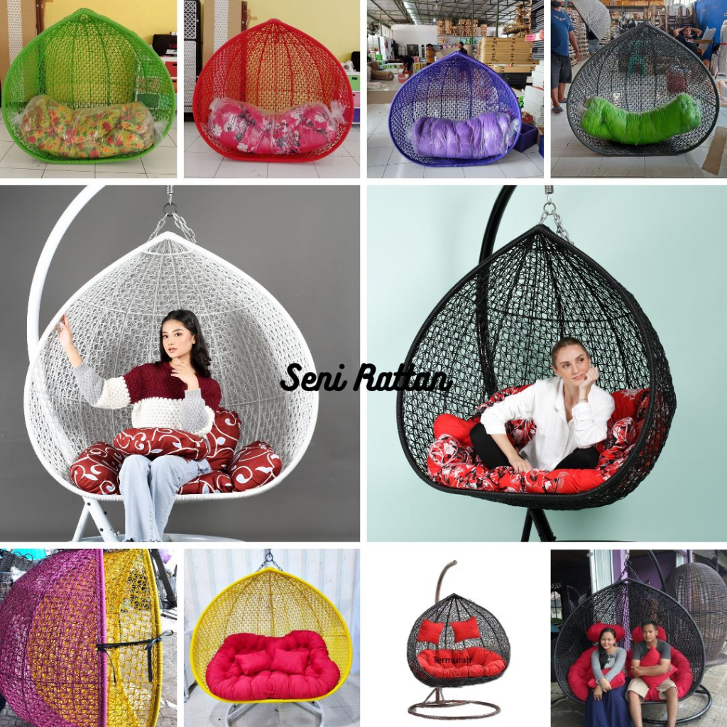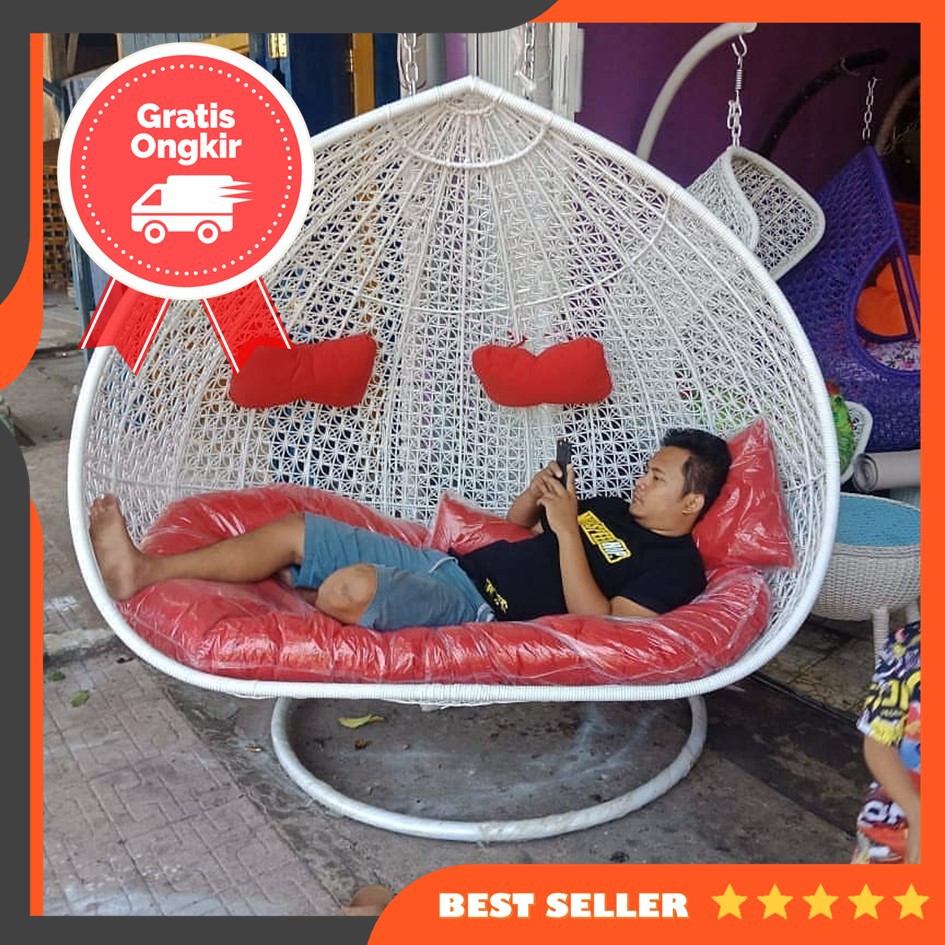 Ayunan Gantung Jumbo XL Rotan Sintetis Termurah Tiang Besi