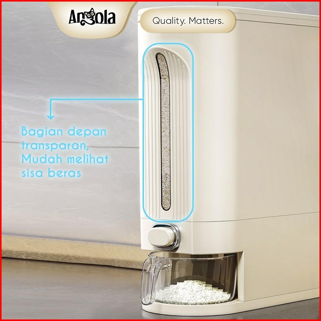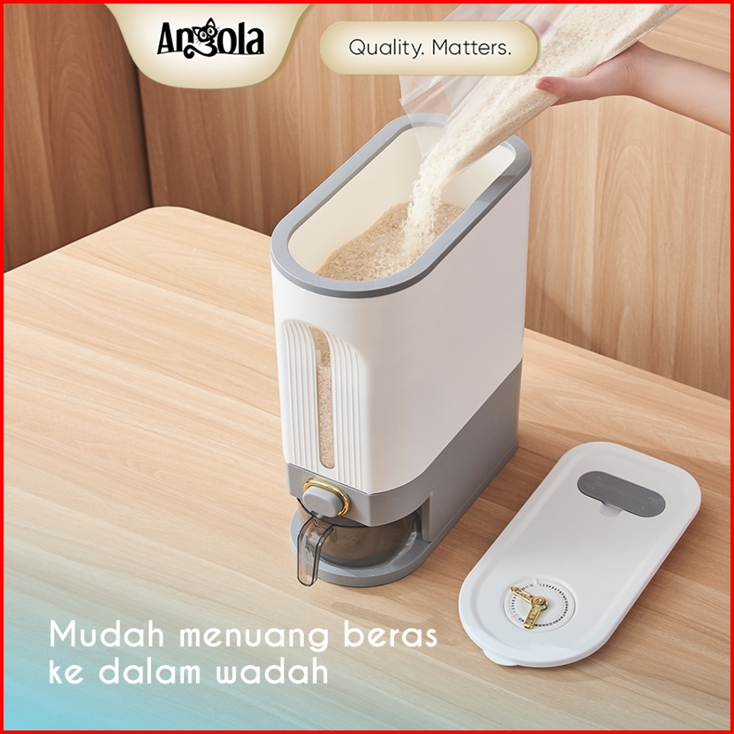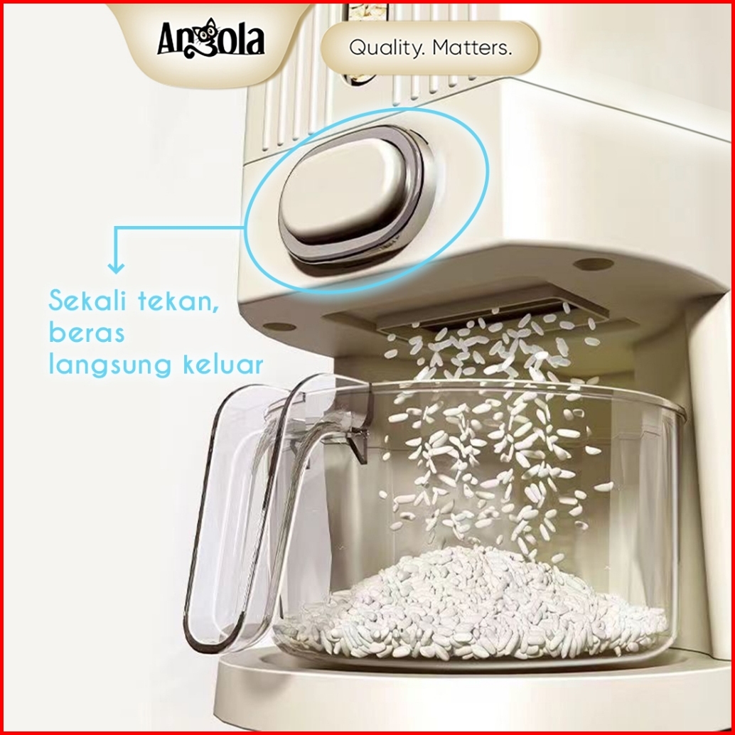 Angola Dispenser Beras Otomasi Anti Kutu 10kg E18 Tempat Beras Gratis Mangkok Cuci Beras Rice Bucket