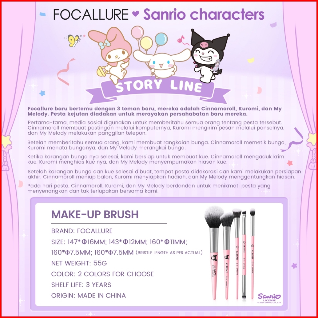 Focallure X Sanrio Fluffy Makeup Brush Set 5pcs Dressupslay