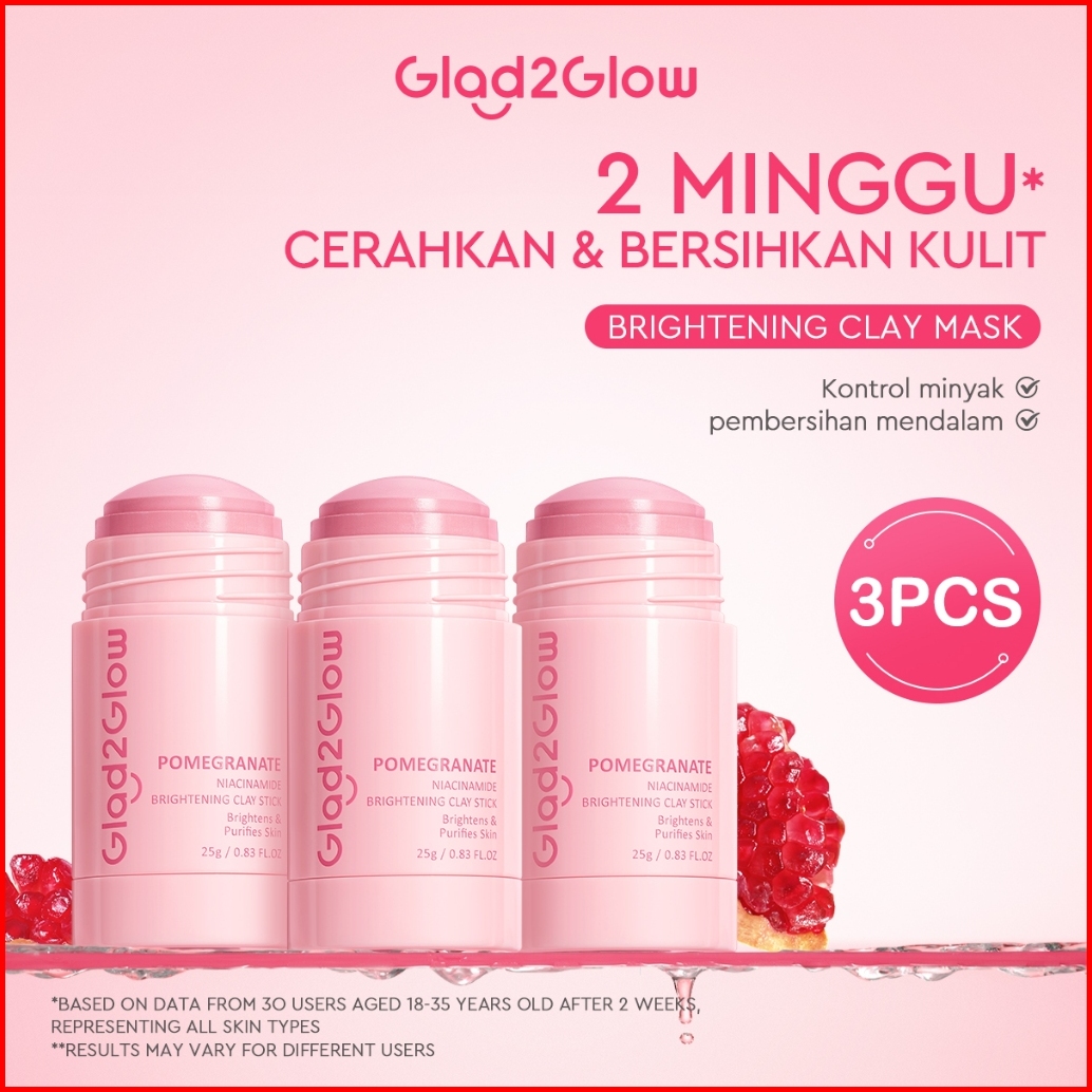 Glad2glow Pomegranate Niacinamide Brightening Clay Stick Wajah Face Cleansing Stick Salicylic Acid Anti Pores Acne Jeraw
