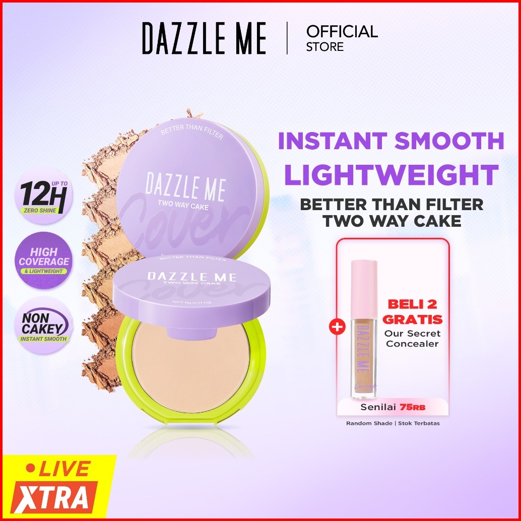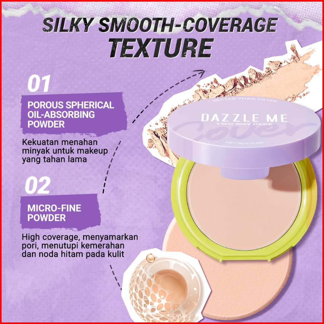 Dazzle Me Better Than Filter Double Kill Two Way Cake Pressed Powder Matte Bedak Padat Compact Powder Foundation High Co