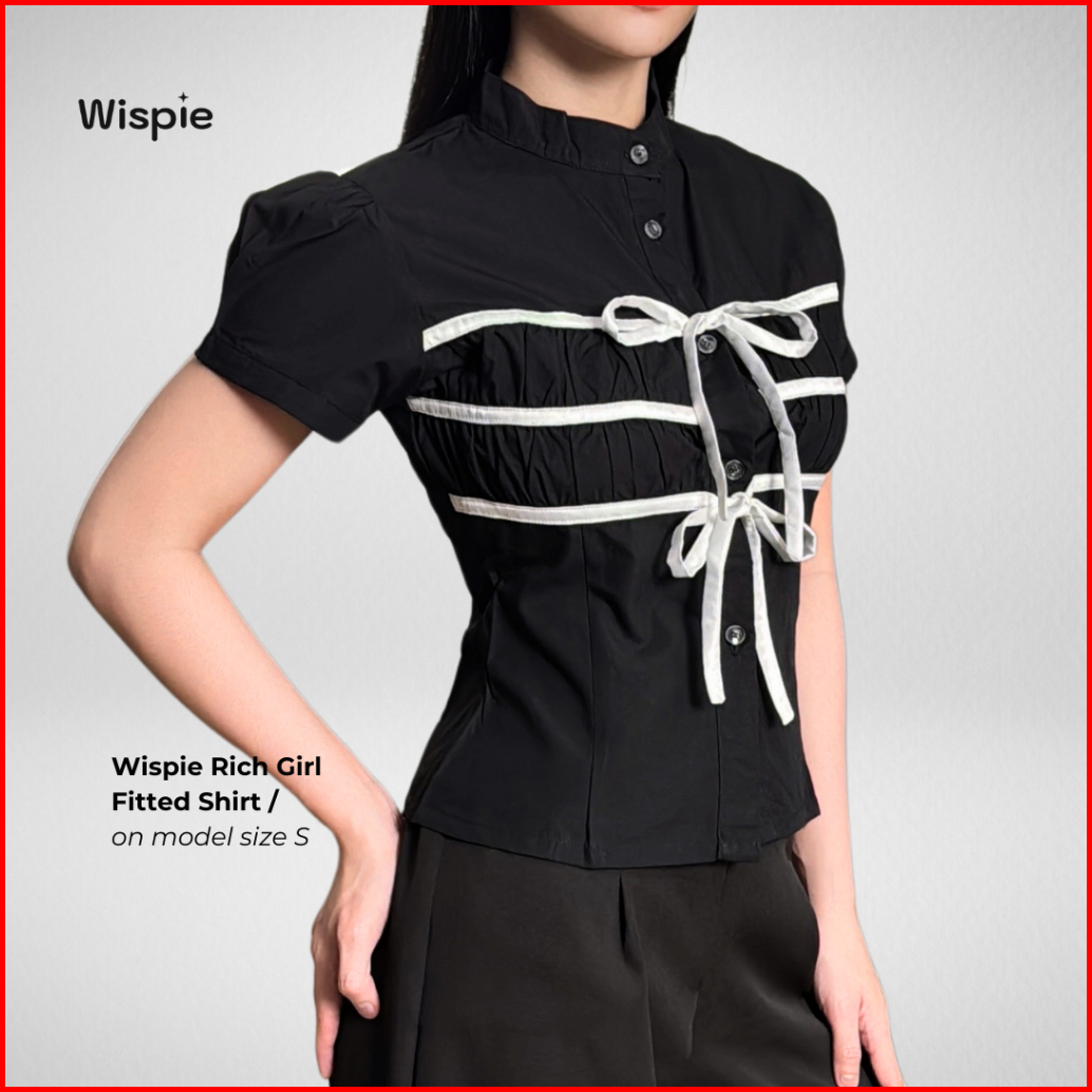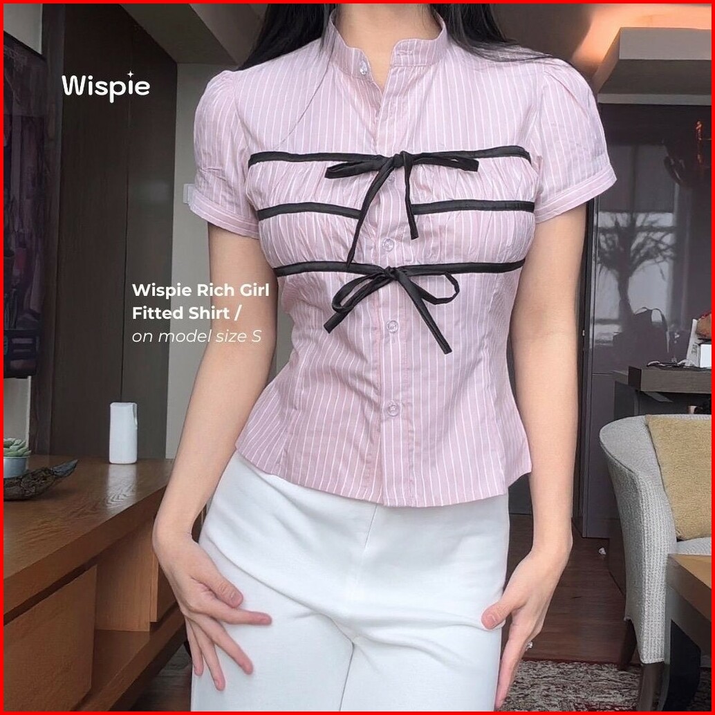 Wispie Rich Girl Fitted Shirt Kemeja Wanita Slim Fit Body Lengan Pendek Kerja Kuliah Kantor Cute