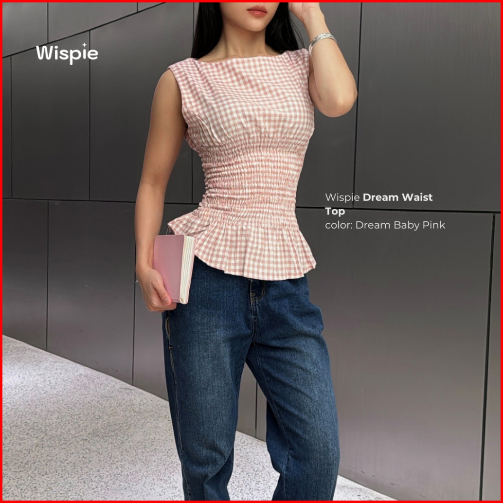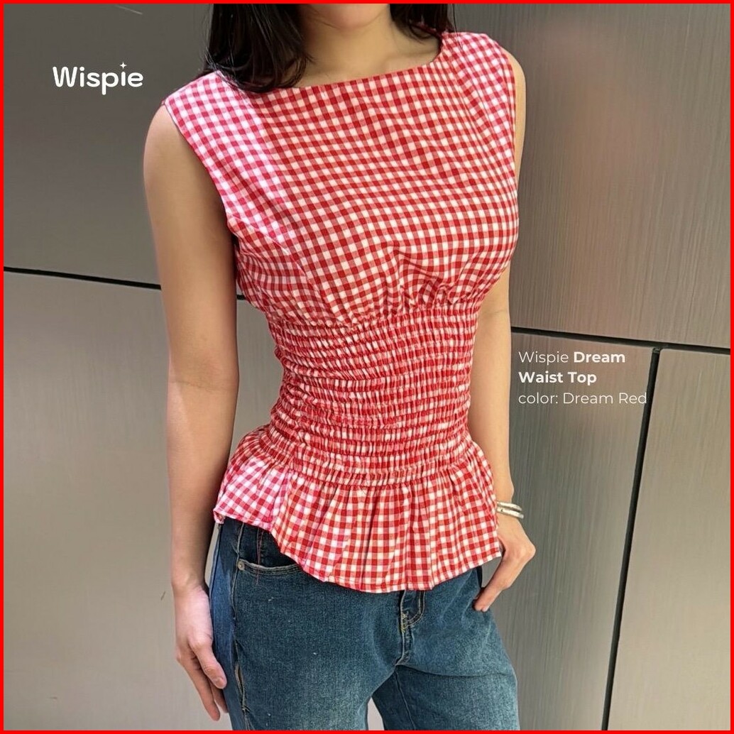 Wispie Dream Waist Top Atasan Wanita Motif Kotak Kotak Blouse Fit Body