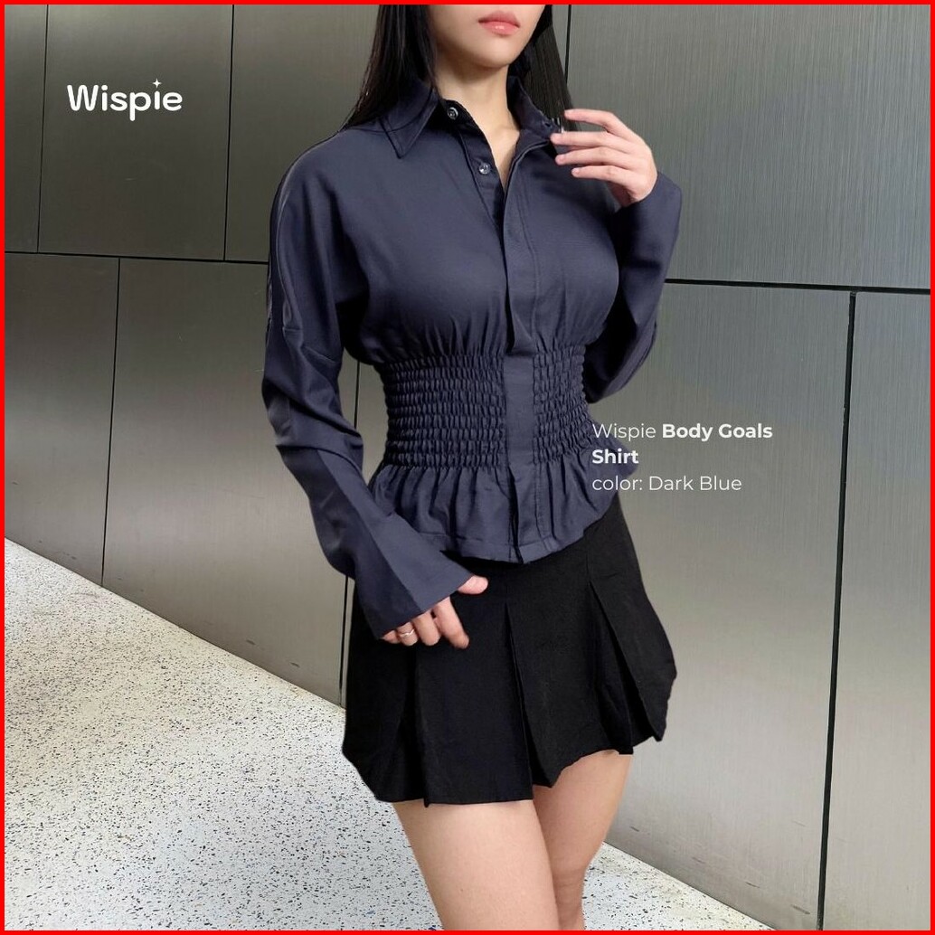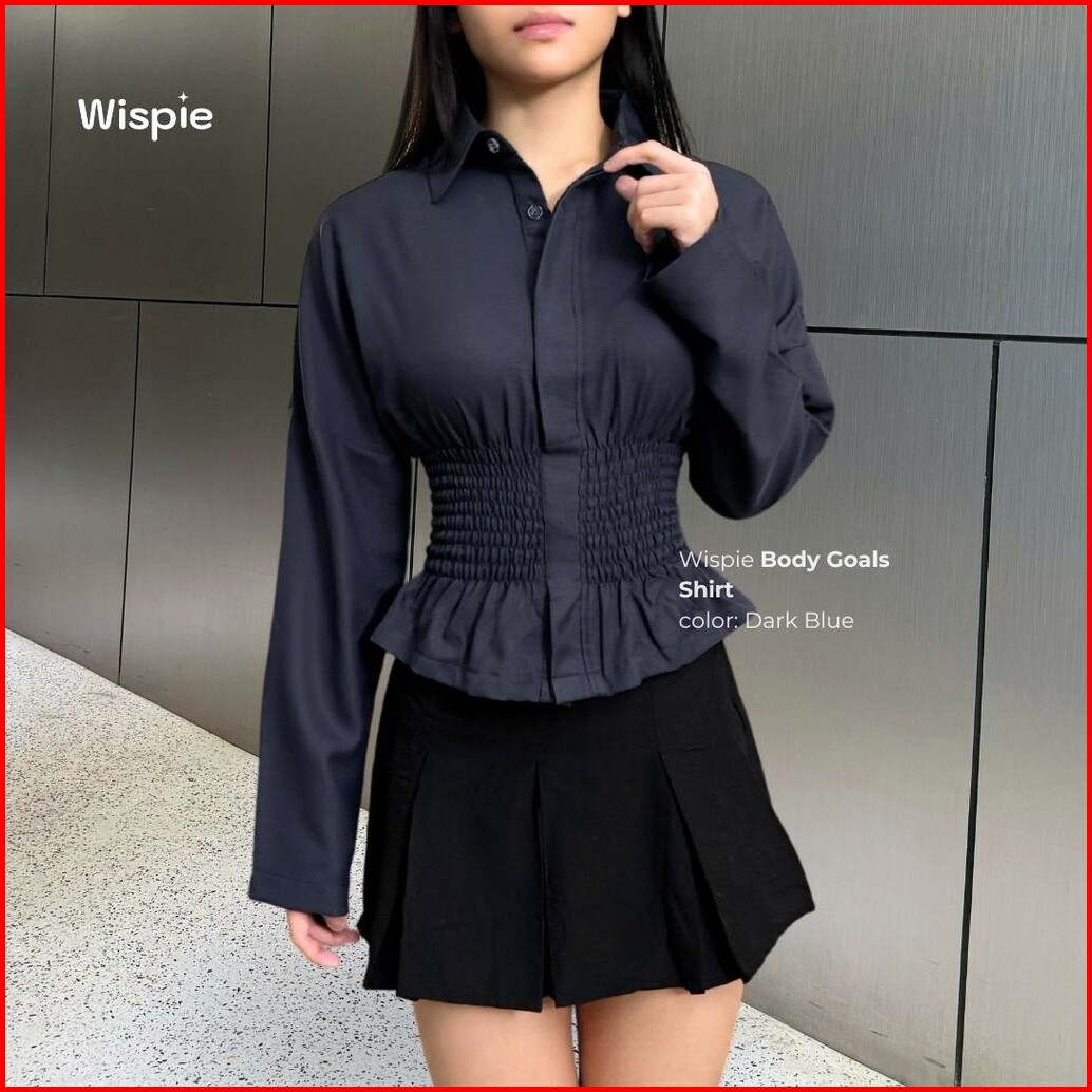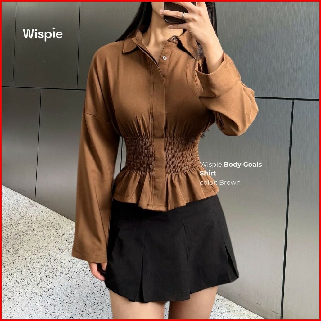 Wispie Body Goals Shirt Kemeja Kerja Fitted Wanita Karet Korset Maroon Putih Panjang Casual Shakila