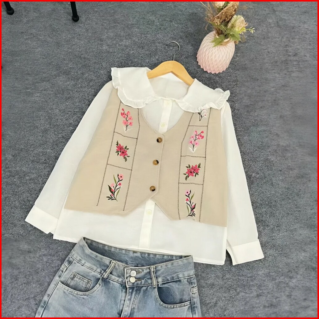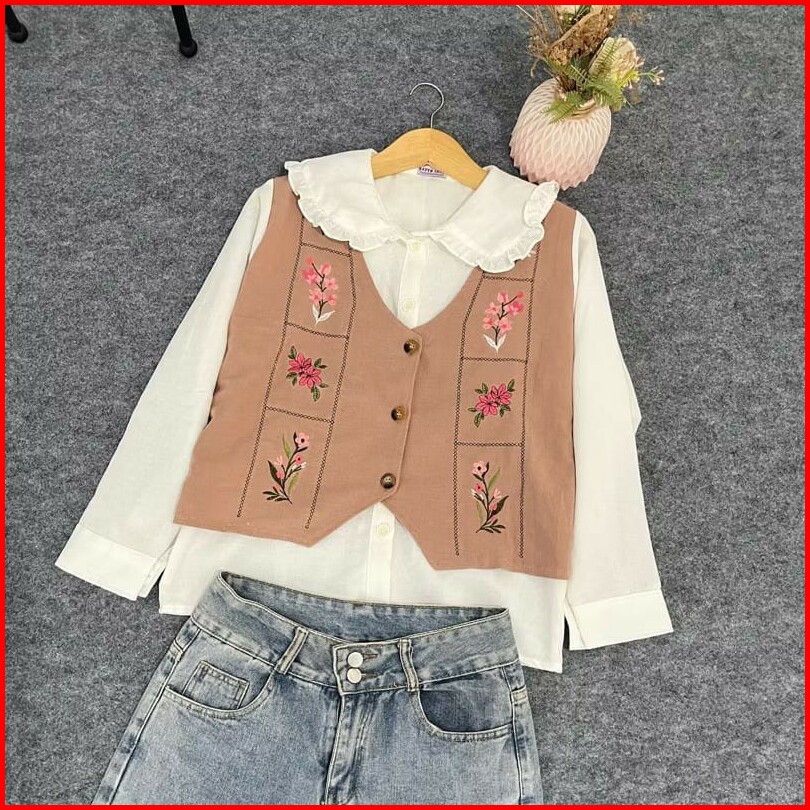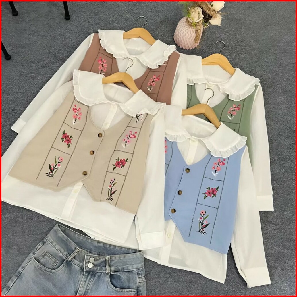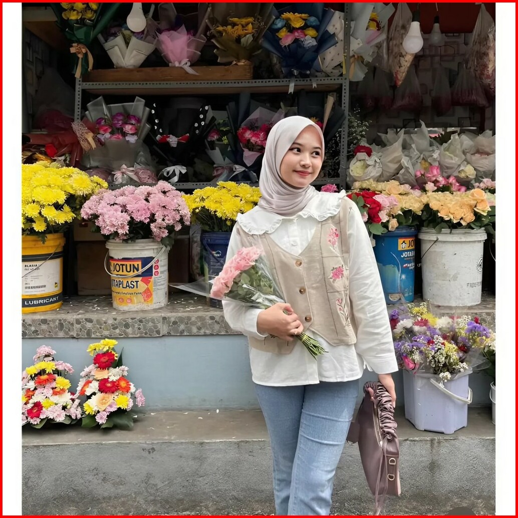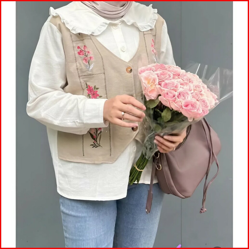 Vallina Outfit - Garden Blouse 2in1 Wanita Muslim Atasan Oversize Linen Premium Ootd Korean Style