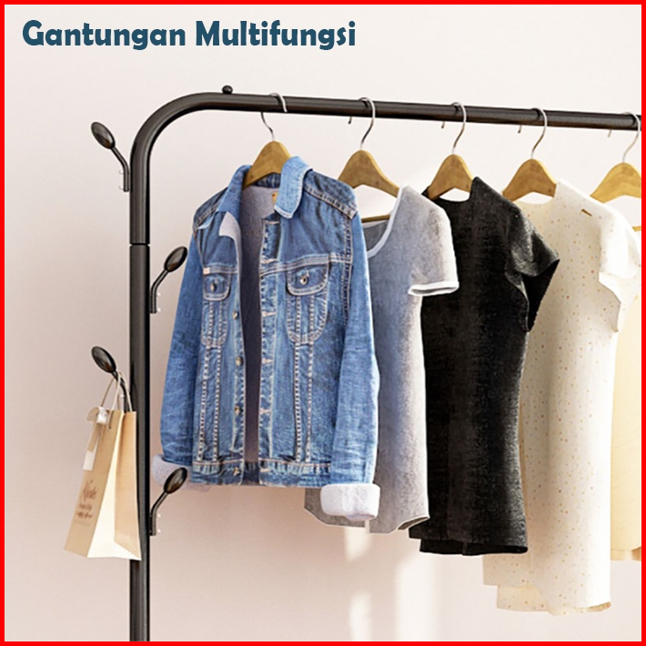 Gantungan Baju Berdiri Besi Kuat Single Stand Hanger Gawang Serbagua