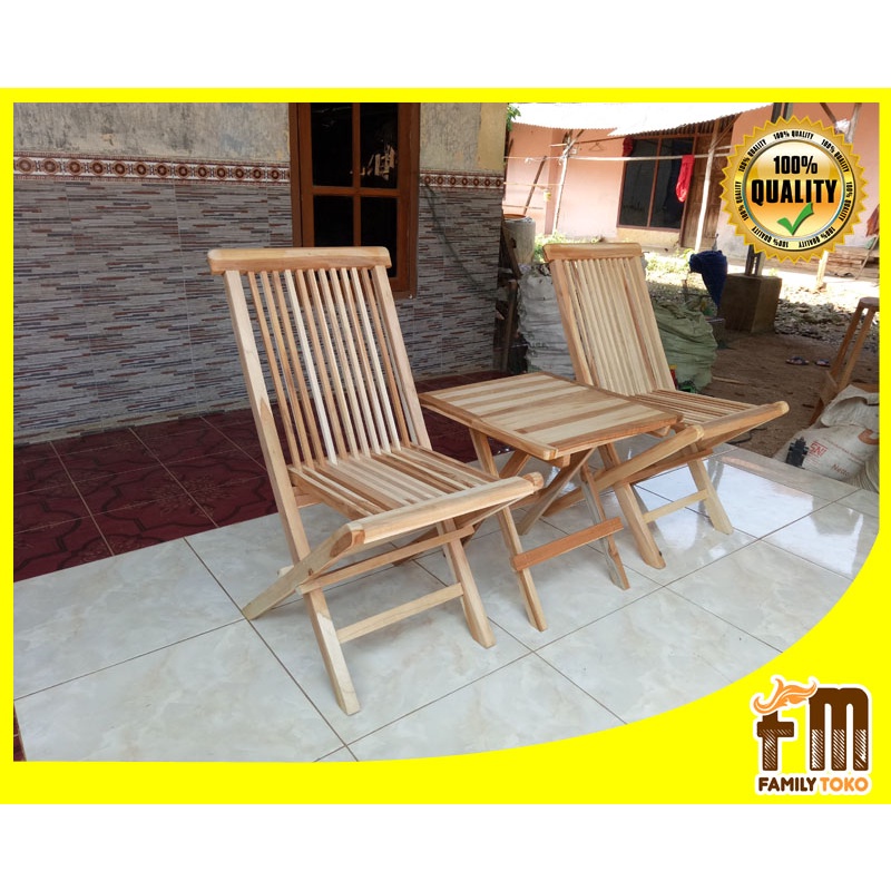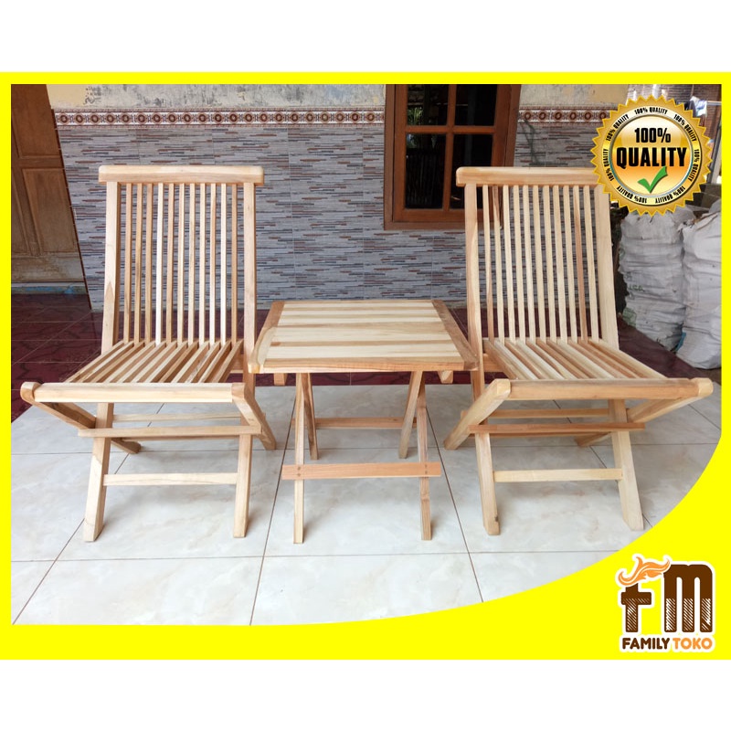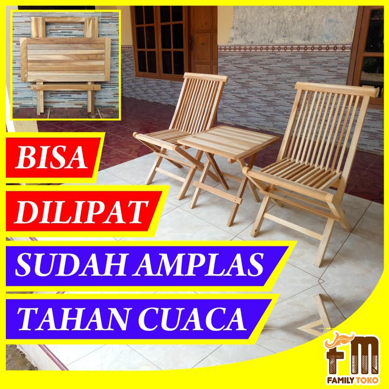FM03 SET MEJA KURSI LIPAT TERAS KOPI CAFE RUMAH TAMU PERSEGI KAYU JATI SET MINIMALIS MURAH ERN