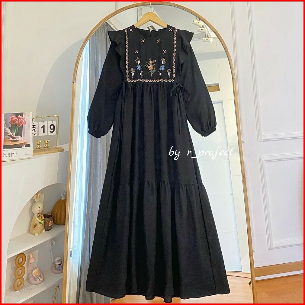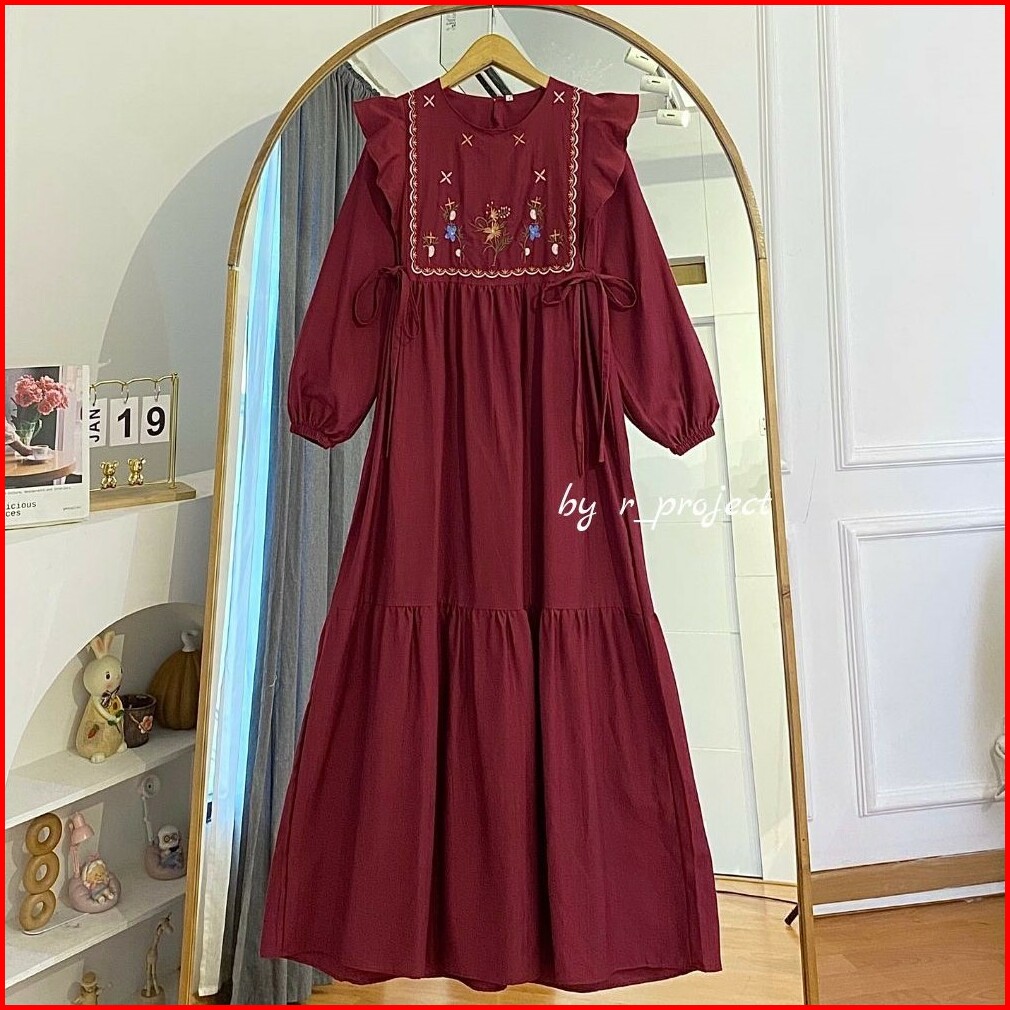 Gamis Bordir L Size Ld 140 130 120 110 102 Dst Gamis Jumbo Bahan Polo Linen Cherika Dress By R Project