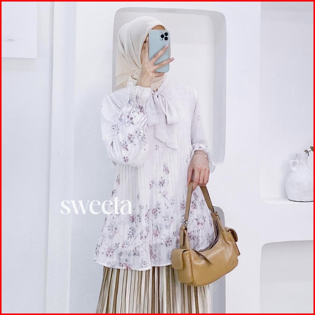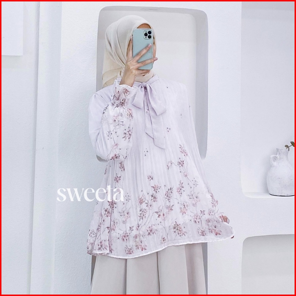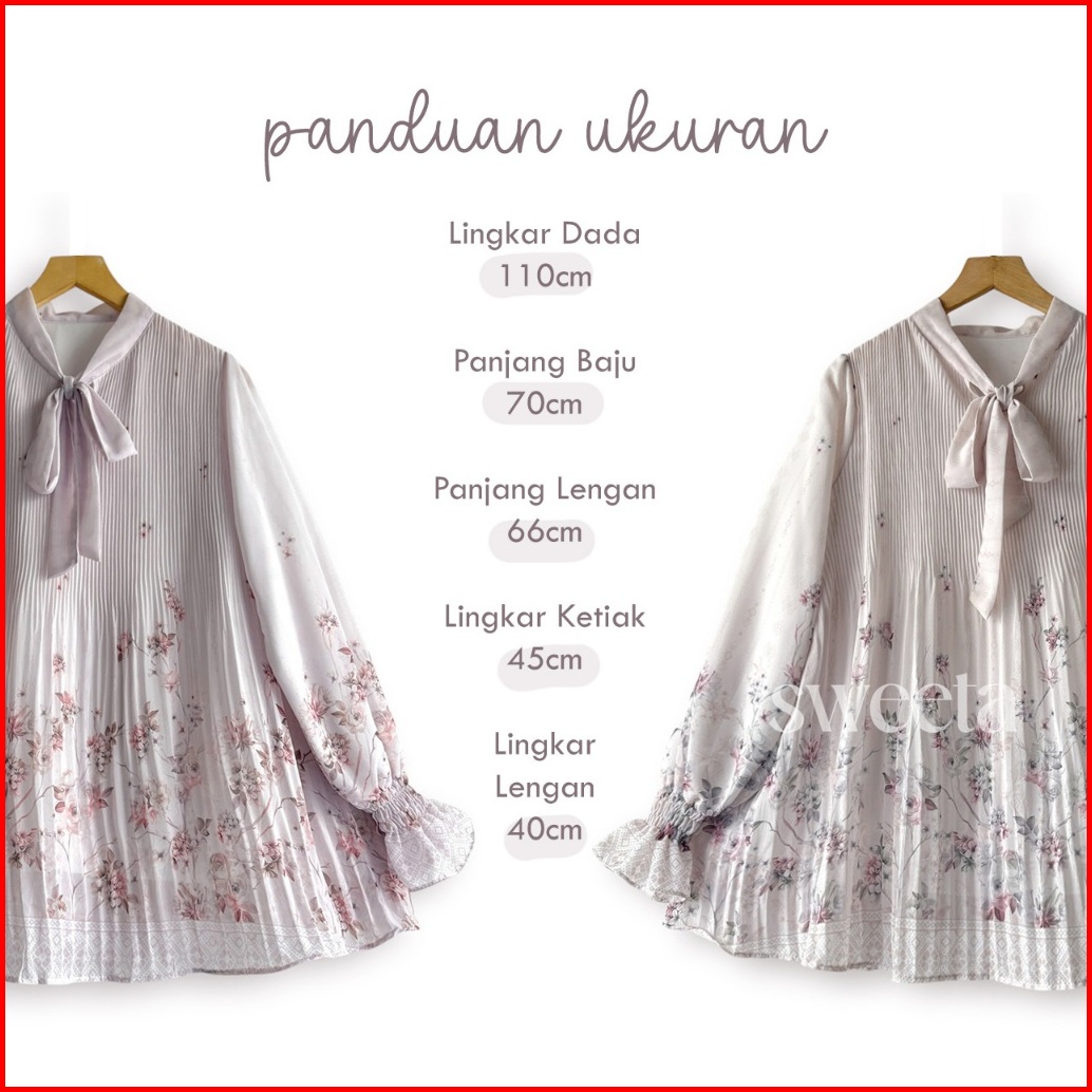 Sweeta Blouse Plisket Leher Pita Floral Ceruty Full Furing Ld 110cm Korea Style Oversize