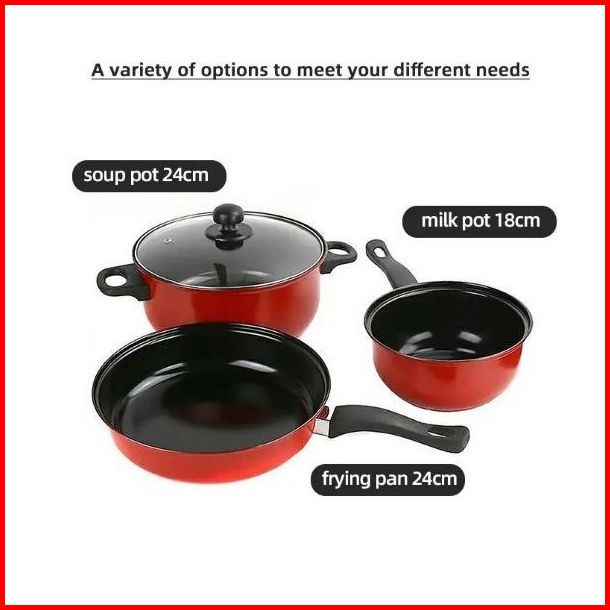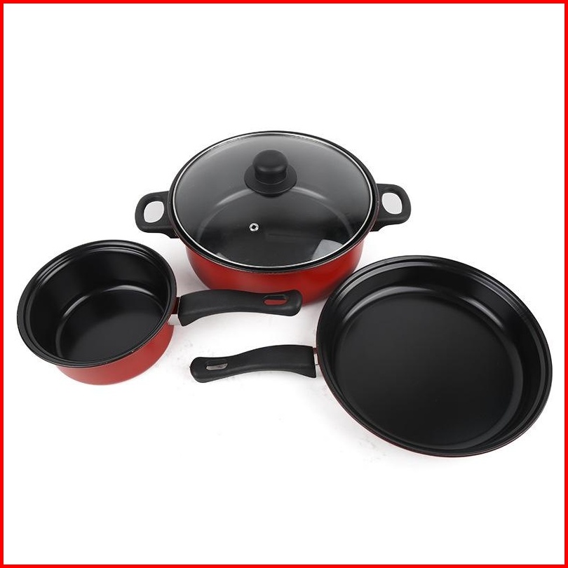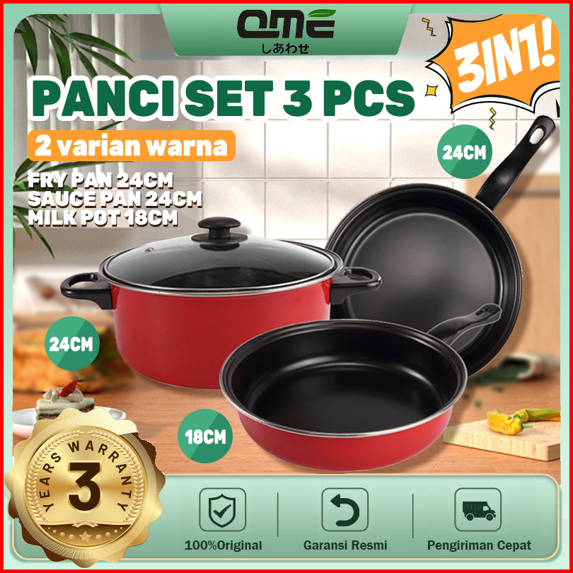 Qme-3 Set Wajan Teflon Stainless Steel Cookware Set Free Penutup Kaca Panci Kukus Fry Pan