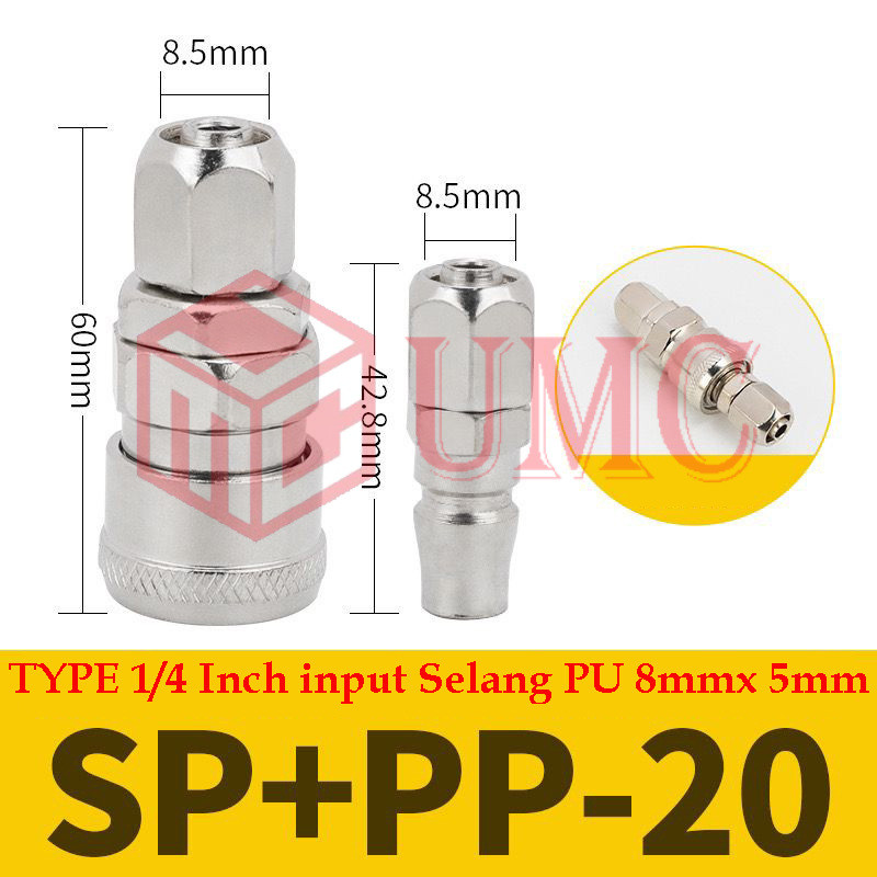 Quick Coupler SP20 PP20 SH20 PH20 SM20 PM20 SF20 PF20 Kopler Connector Kompresor Angin 14 Inch