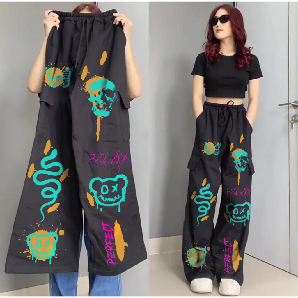 PERFECT SWEATPANTS KIYOWO Sweatpants Celana Jogger Cargo Celana Jogger Korean Style Wanita Casual Celana Olahraga Motif Sablon Jogger Kiyowo