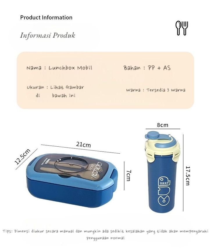 RJ Lunchbox Cup One Set / Kotak Makanan Anti Tumpah Free Botol + Sendok Garpu + Tempat Saos BPA FREE
