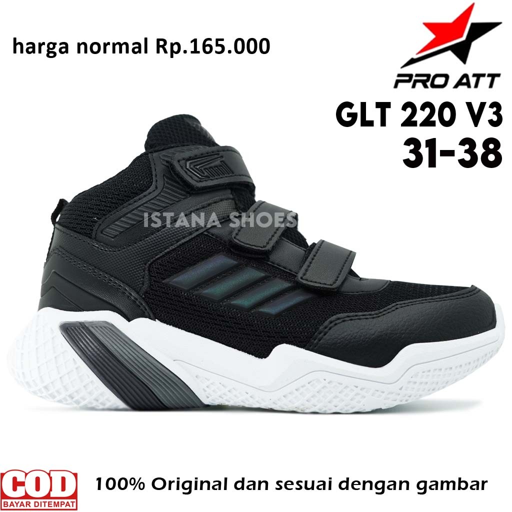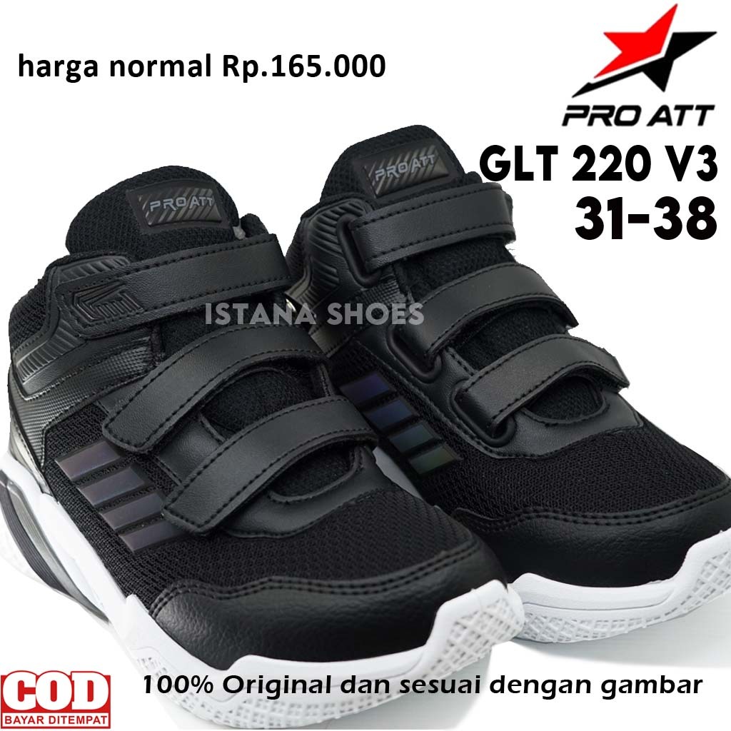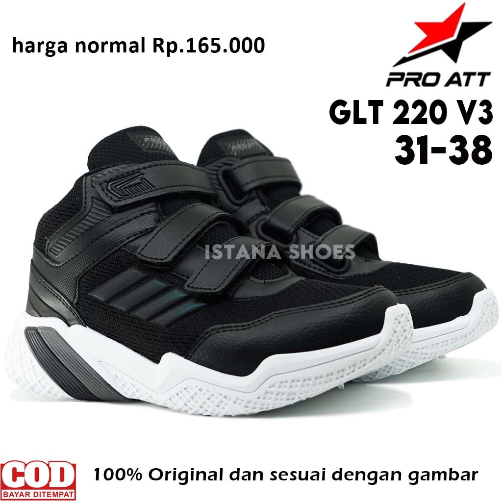 Sepatu Sekolah Anak Laki Laki Perempuan PAUD TK SD SMP PRO ATT GLT 220 V3 Perekat HITAM PUTIH Boots