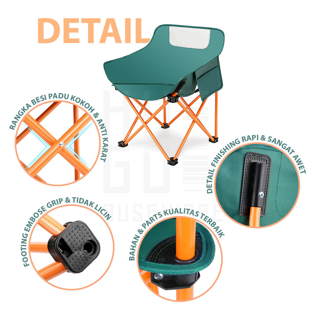 Paus Biru - Kursi Lipat Outdoor Kursi Moon Camping Chair Bulat Portable Lebih Kuat - Kursi Mancing Lipat Sandaran