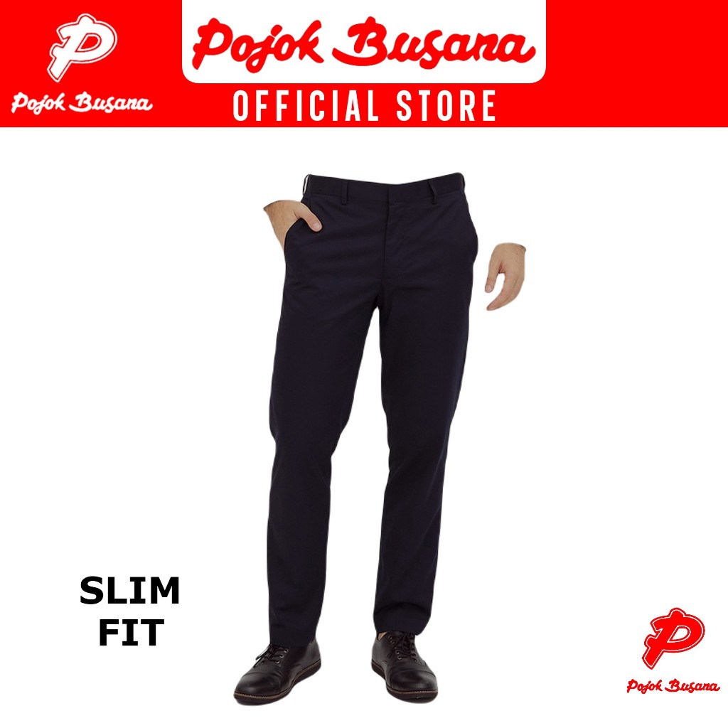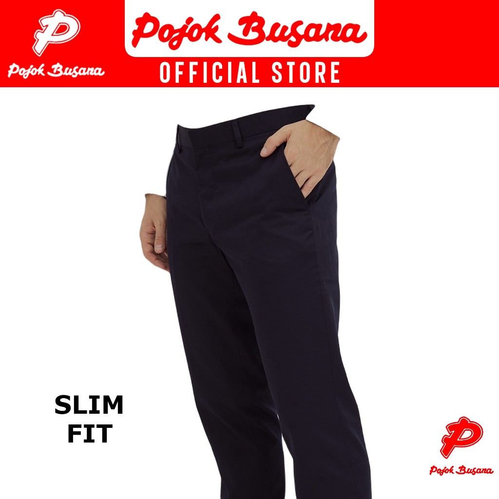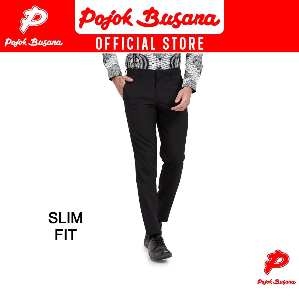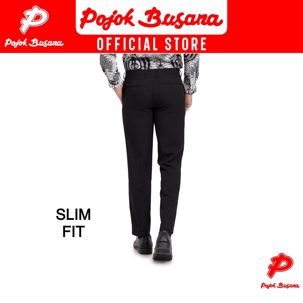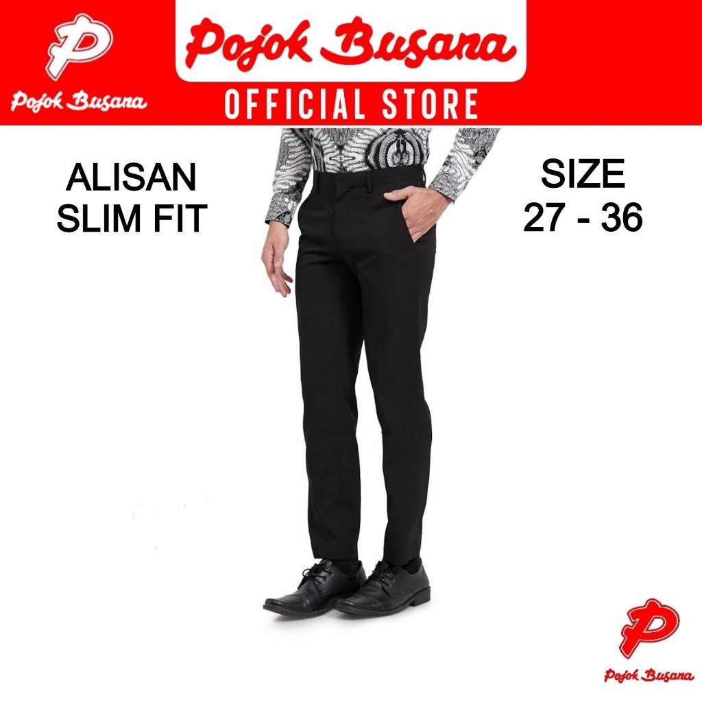 Pojok Busana Celana Panjang Formal Alisan Slim Fit Pria - Celana Kerja Bahan Cowok Sopan - Hitam