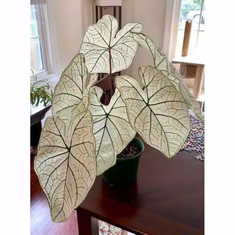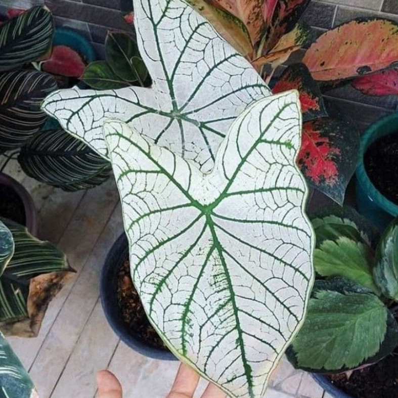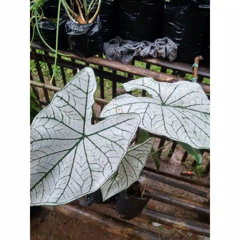 ( BISA ) LIMITED Tanaman Hias Keladi Putih / Bunga Hias Keladi Tissue / Tanaman Hidup Alocasia Caladium Snow White Moon