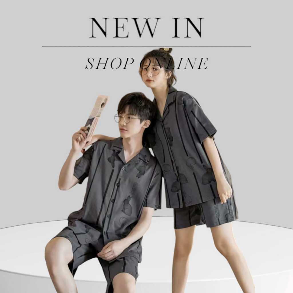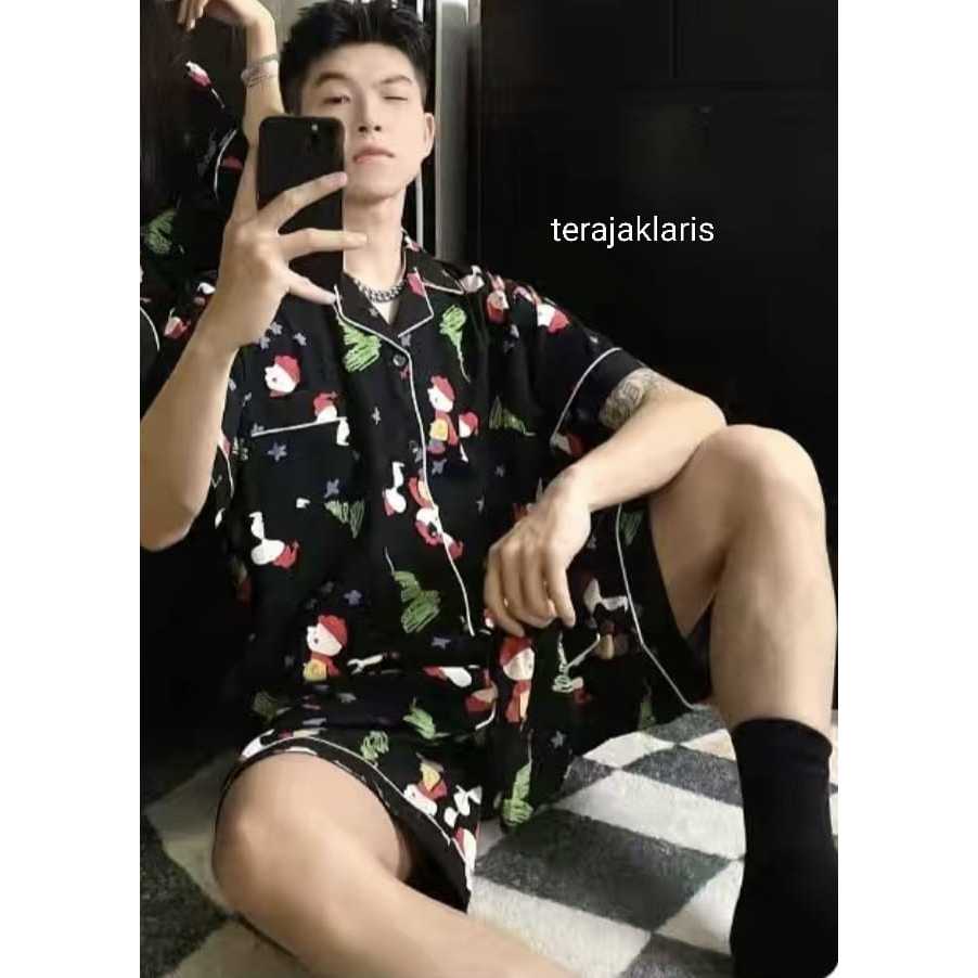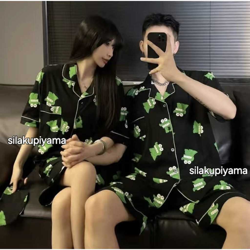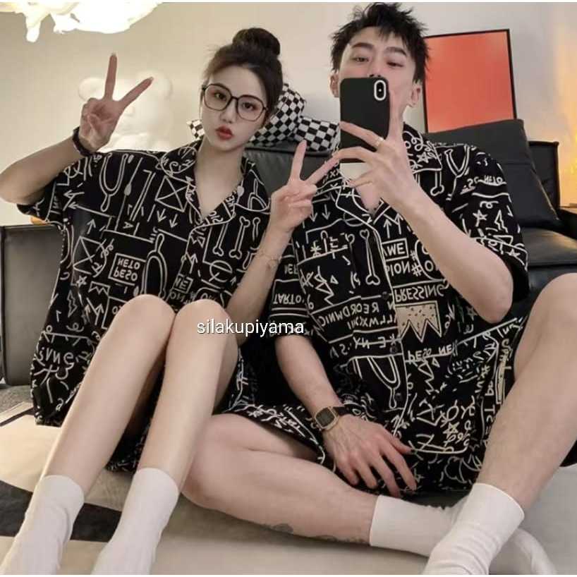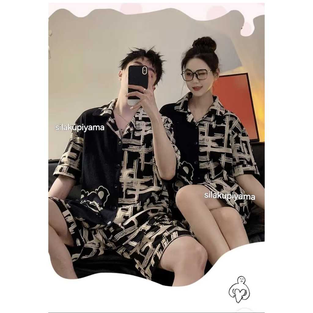 Baju tidur piyama couple bahan katun Kaos lengan pendek celana pendek kra kancing