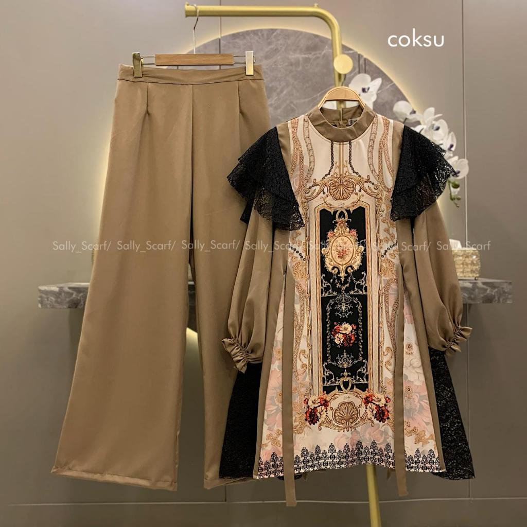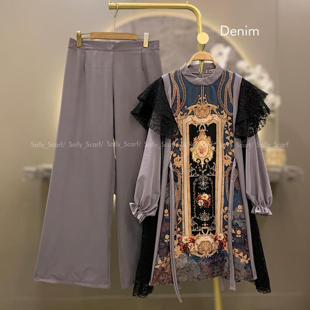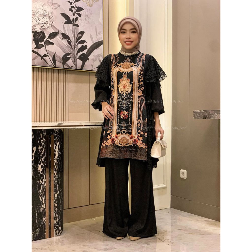 Sally Scarf- Opalia Tunik setelan celana printing mix brukat lace one set basic daily