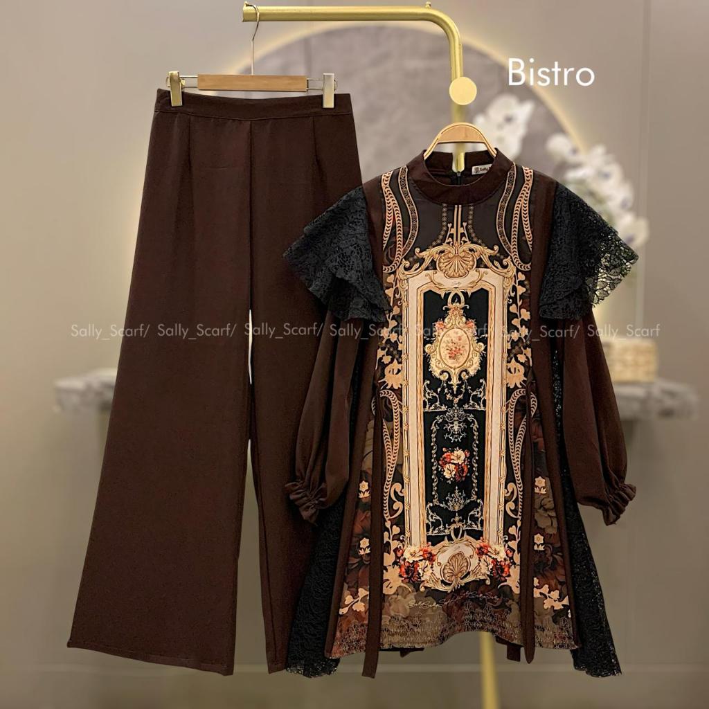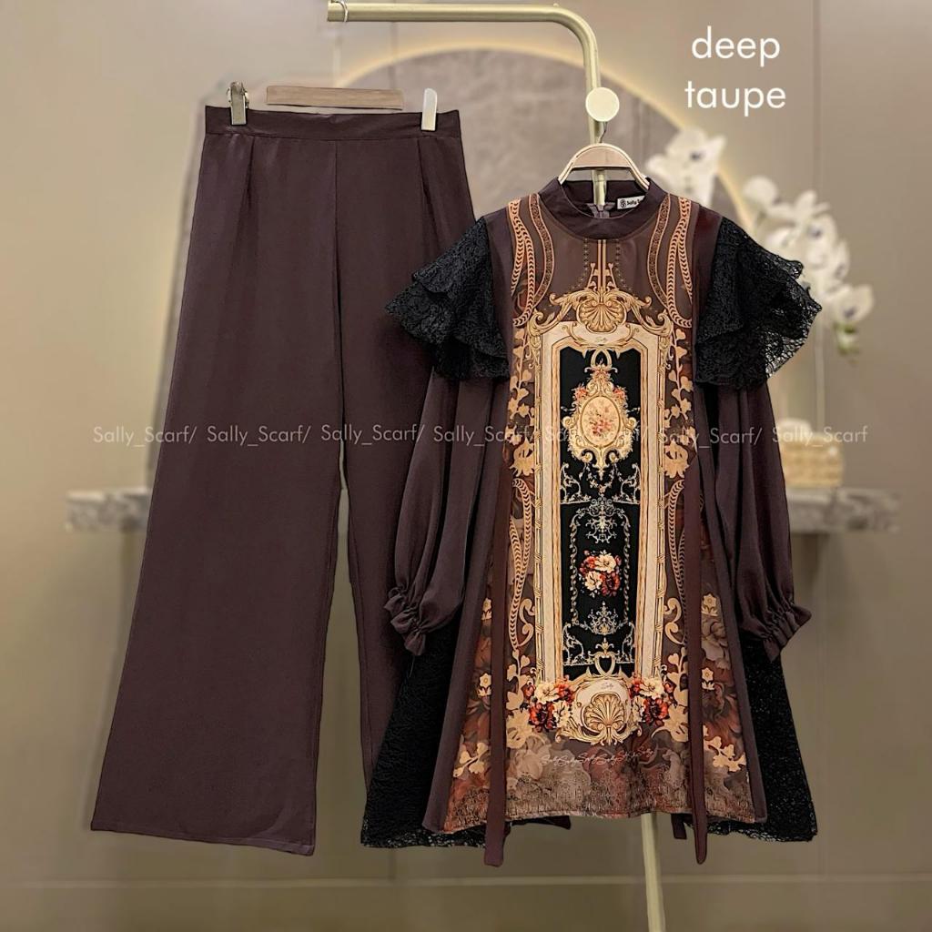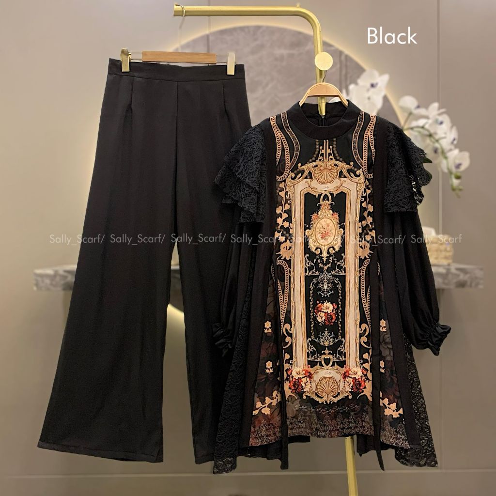 Sally Scarf- Opalia Tunik setelan celana printing mix brukat lace one set basic daily