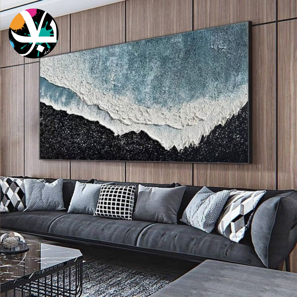lukisan kanvas ombak - lukisan ombak siap pajang - ocean sea art painting plus frame