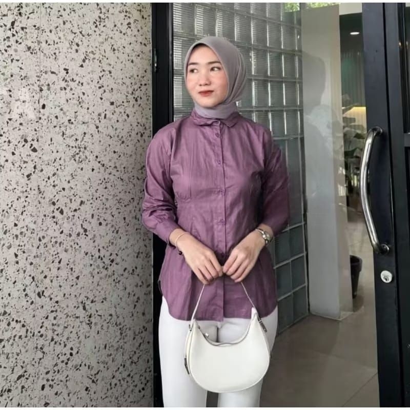 Kemeja Wanita Luna Top Slevee LD 105cm Dan 115 cm Matt Katun Premium Kemeja Wanita Press Body
