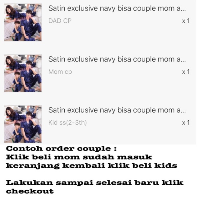 Piyama SATIN NAVY exclusive bisa couple pasangan mom and kids and family
