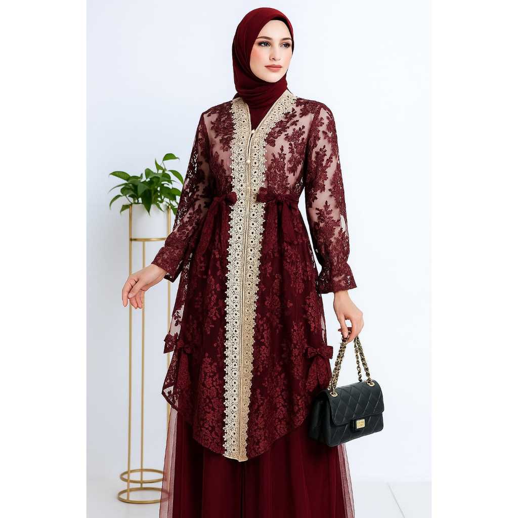 YESAYA Outer Brukat Atasan Tunik Muslim Wanita Full Bordir Outfit Kondangan 26565