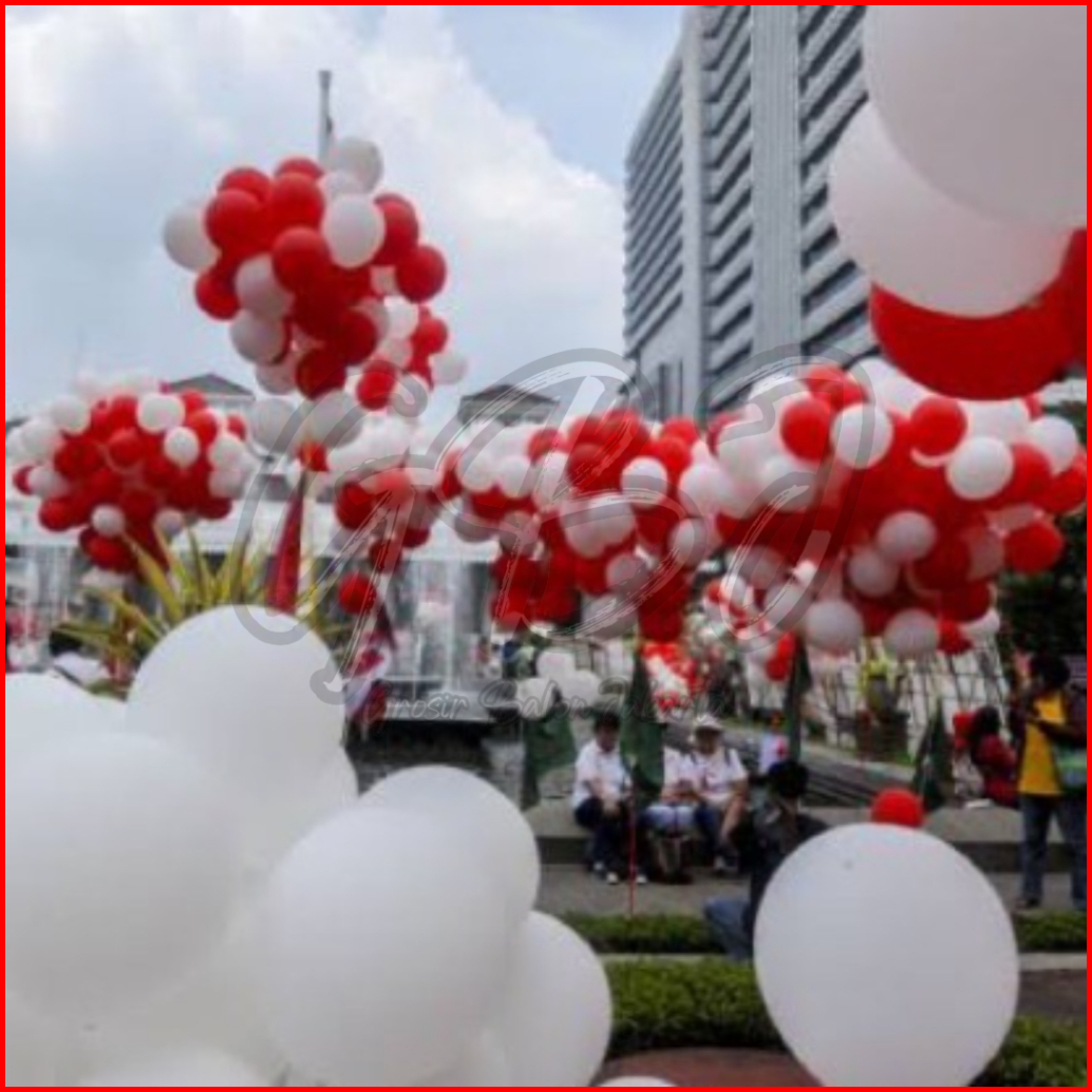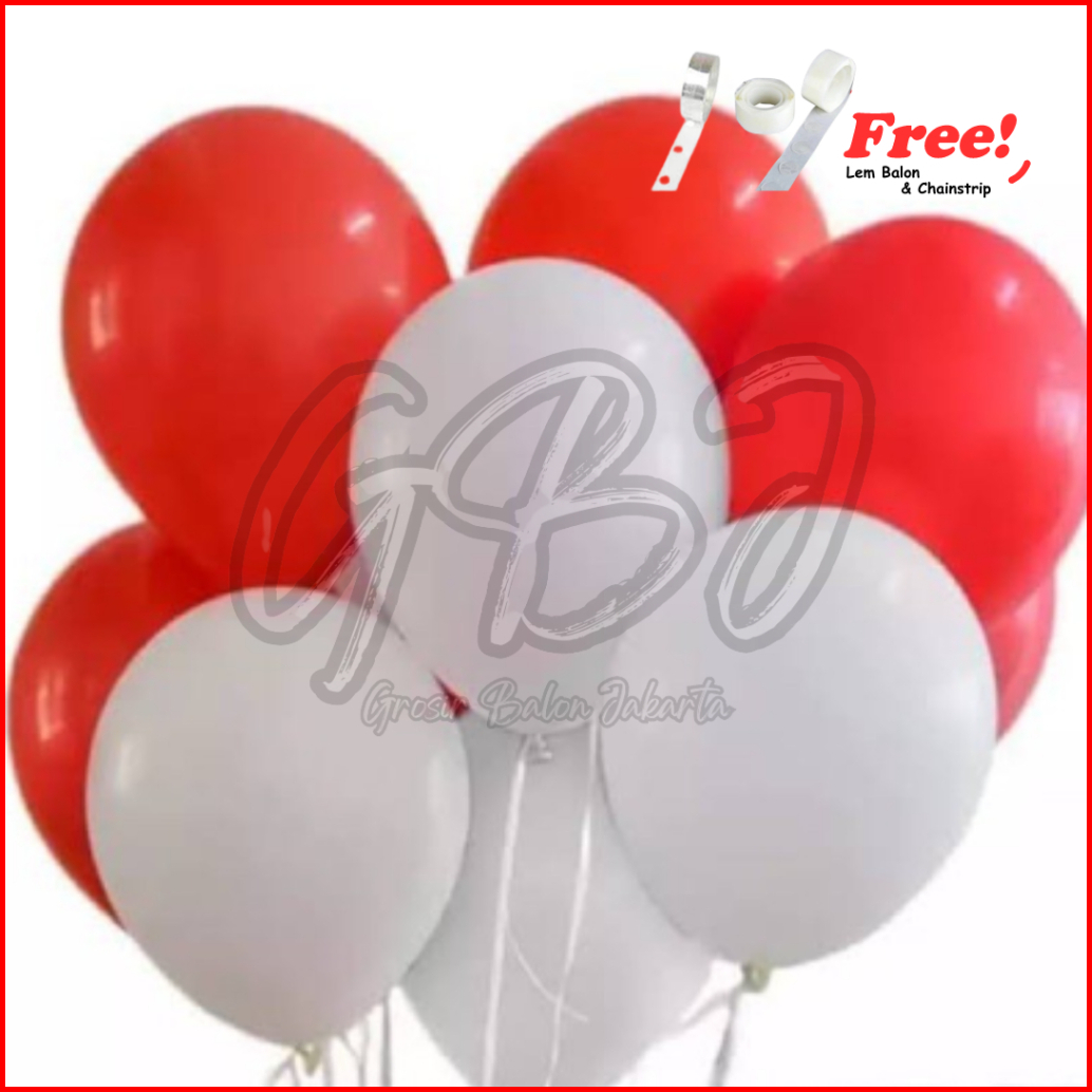 Isi 100pcs Balon Merah Putih Premium - Free Lem Balon Chainstrip - Paket Balon Latex Kemerdekaan Dirgahayu Hut Ri Set De