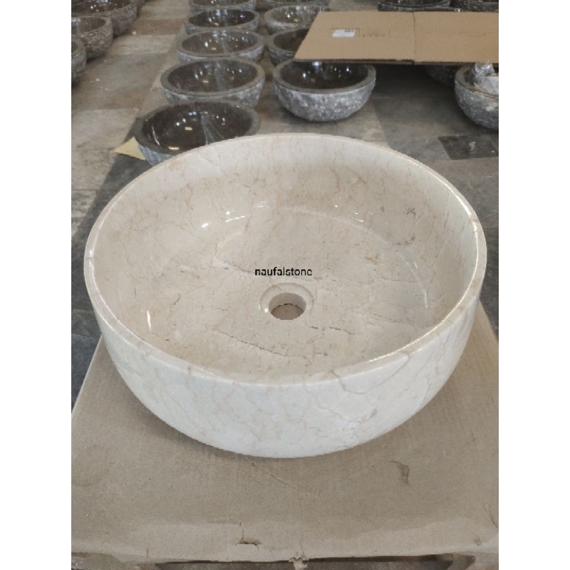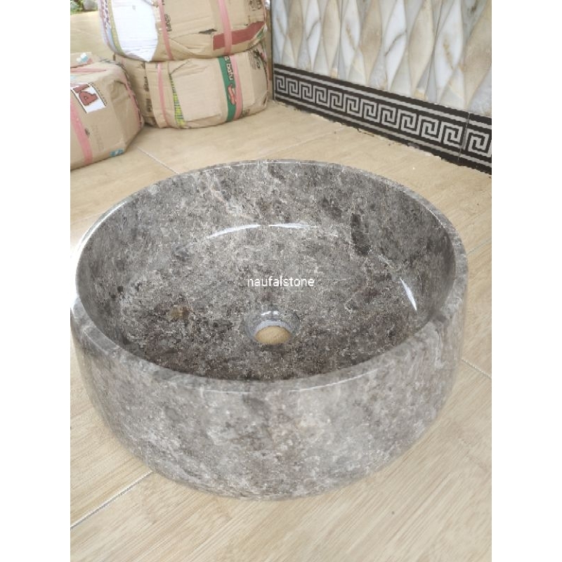 Wastafel Cuci Tangan Batu Marmer D40cm Free Packing Kayu