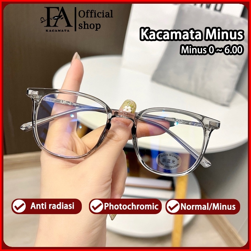 Fomamata Kacamata Minus Photocromic Wanita Anti Radiasi Blueray Uv400 Bluechromic Square 2 In 1 Astigmatism Fashion Fram