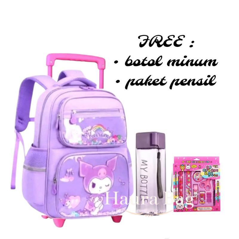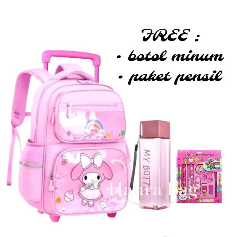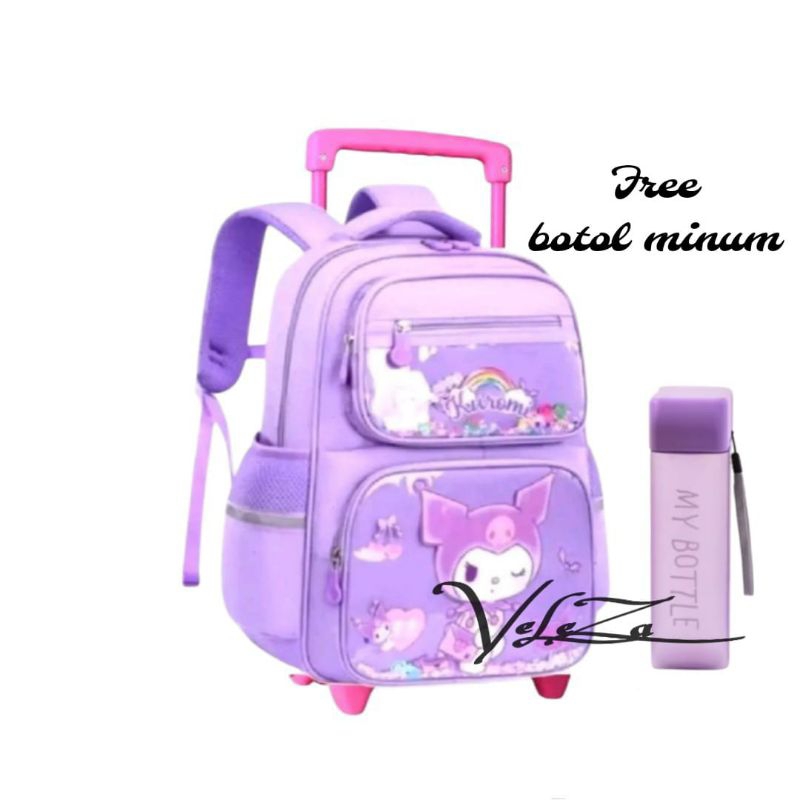 Tas troli anak perempuan kuromi melody cinnamoroll tas dorong anak SD tas troli tas anak