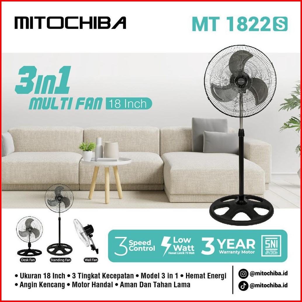 Mitochiba Kipas Angin Industrial 3 In 1 Mt 1822s Fungsi Berdiri Dinding Meja