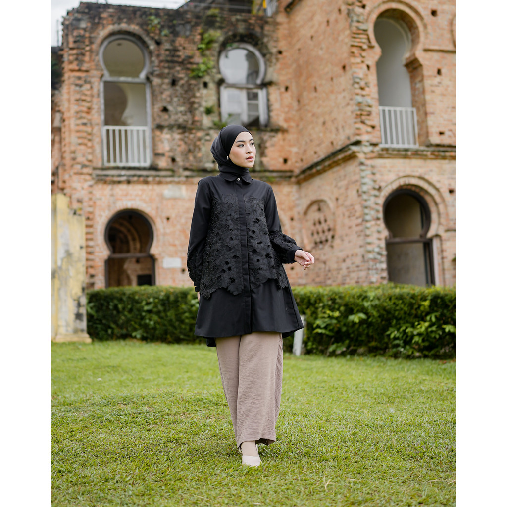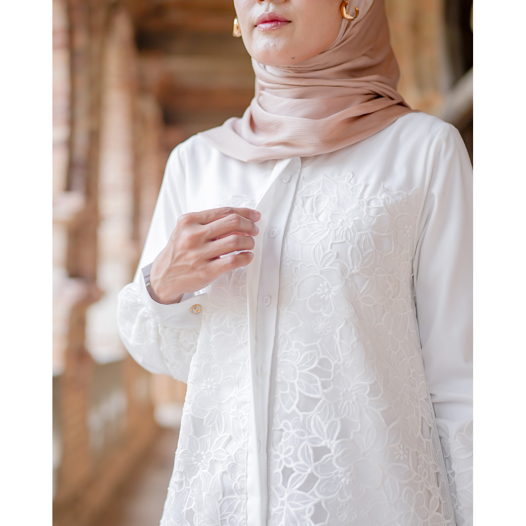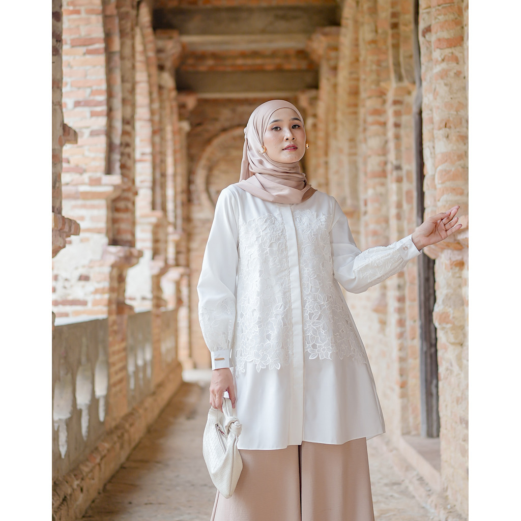 Mooi Tunic Zysku Xena Tunik Kemeja Wanita Lengan Panjang Organza Bordir Brokat