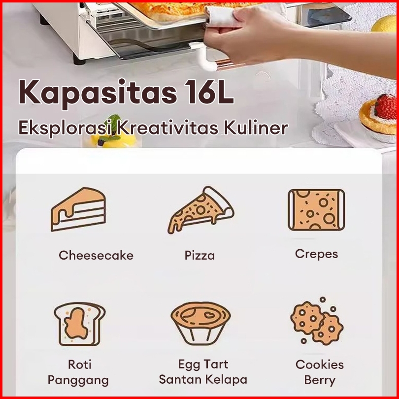 Tixx Oven Listrik Hemat Energi 16l 750w Electric Oven Kue Pagi Pembuat Roti Oven Multifungsi