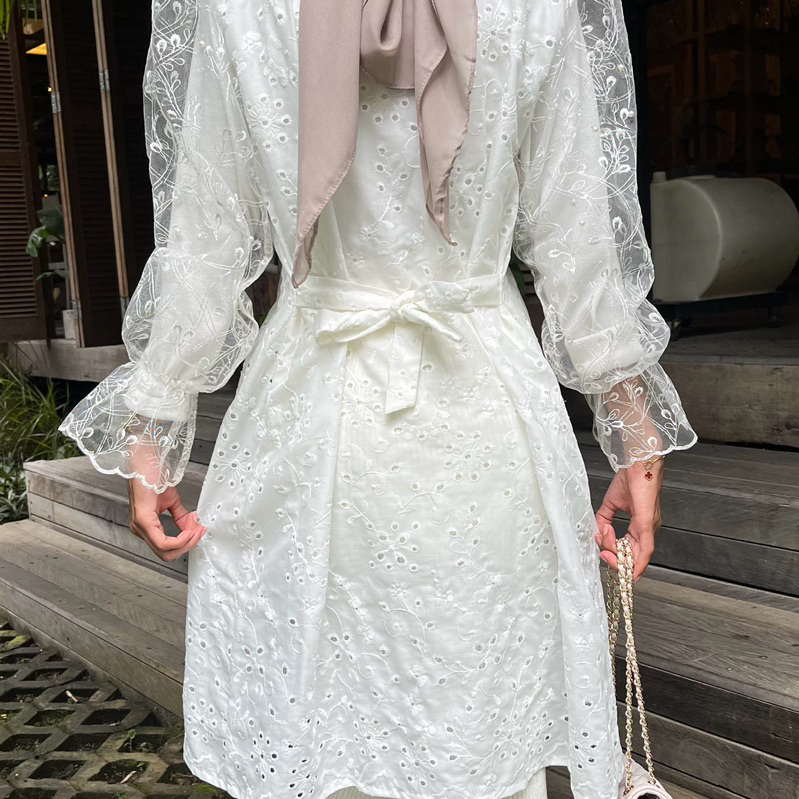 KALLUNA TUNIK GAMIS BROKAT EMBROIDERY BORDIR WANITA BAJU KURUNG KATUN BAJU KONDANGAN BAJU LEBARAN LENGAN PANJANG GAMIS MELAYU RAYA COLLECTION KATUN BOLONG