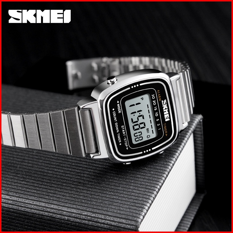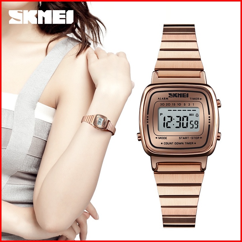 Jam Tangan Wanita Skmei 1901 With Alarm Women Led Digital Stainless Steel Jam Tangan Digital Original