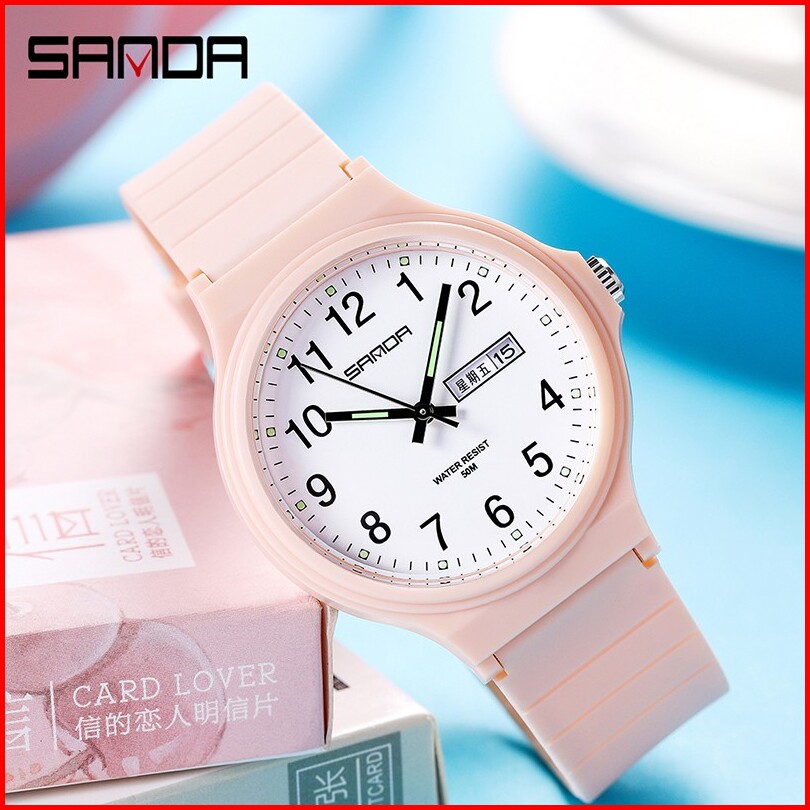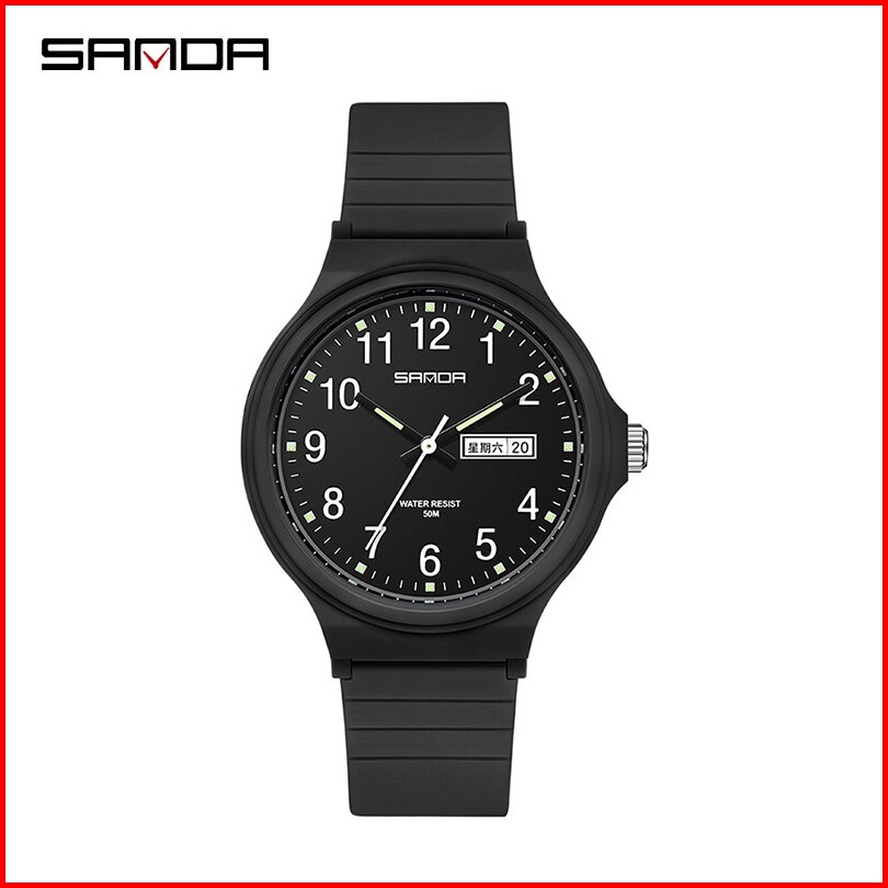 Sanda 6060 Jam Tangan Wanita Pria Analog Sport Tali Rubber Luminous Currenos