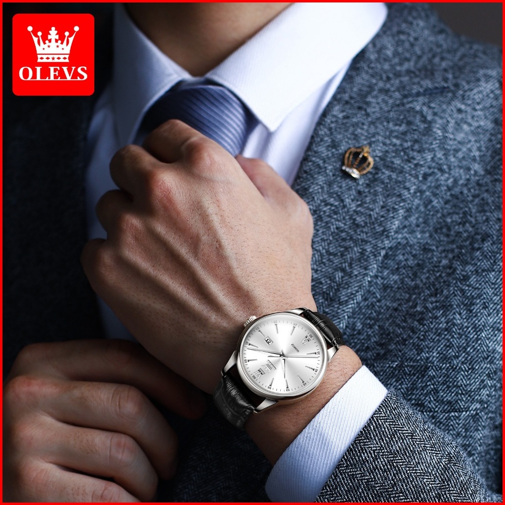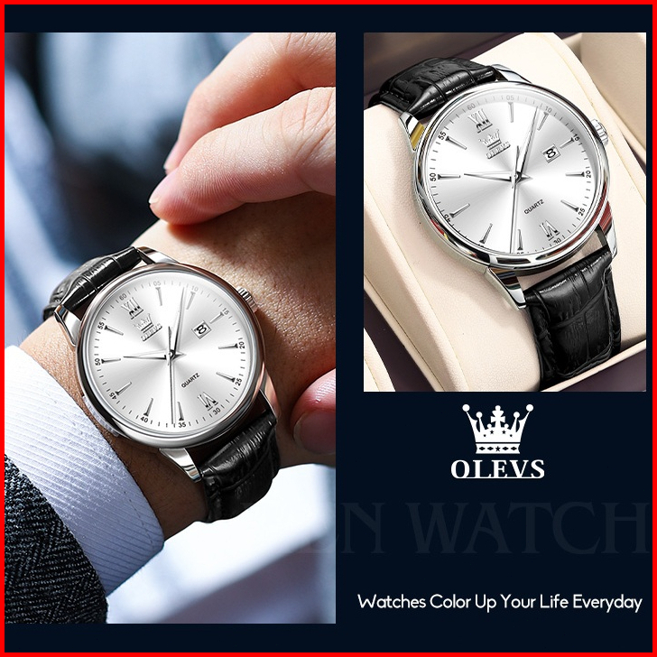 Olevs Jam Tangan Pria Original Anti Air Cowok Kulit Kalender Analog Arloji Bisnis Fashion Men Watch Ready Stock Mode 500