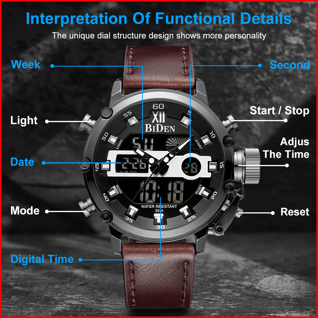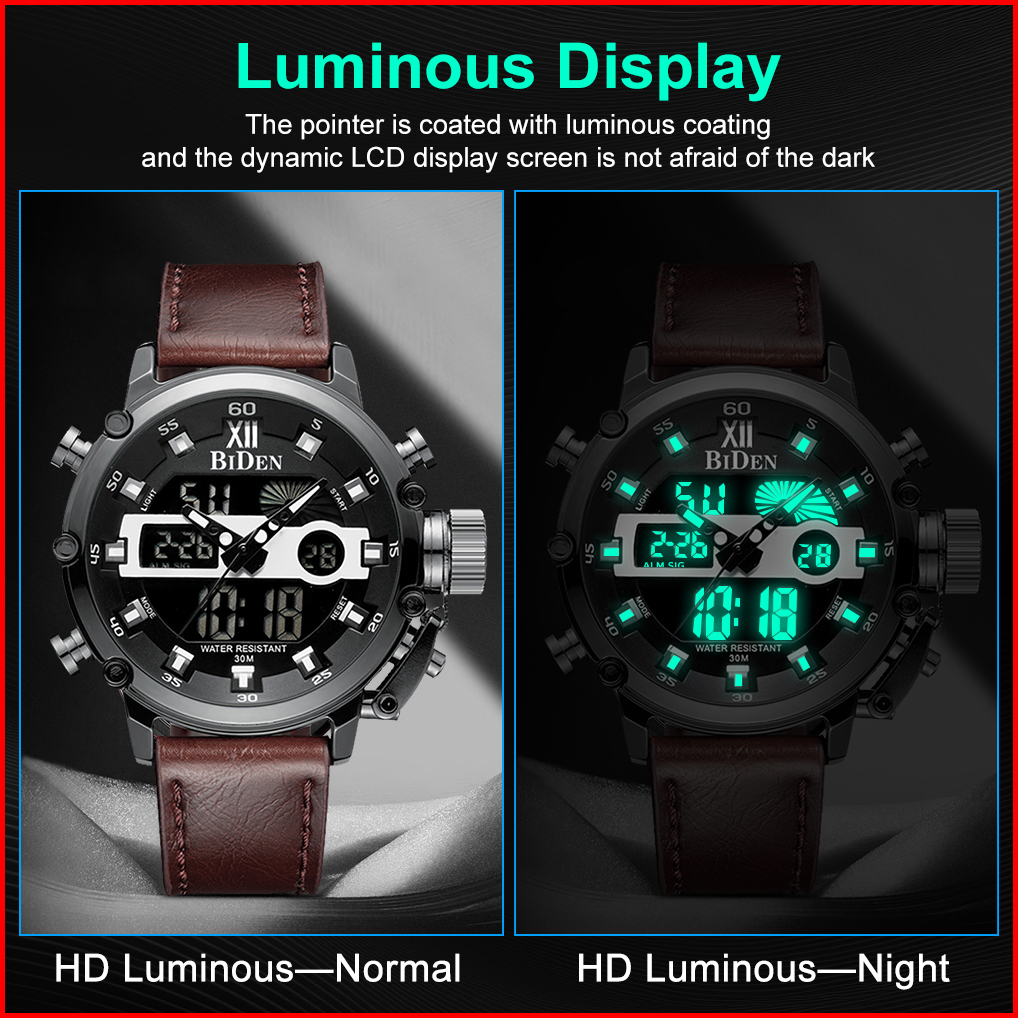 Biden Jam Tangan Pria Olahraga Militer Analog Digital Tali Tali Kulit Anti Air Kuarsa Jam Tangan Cowok Original