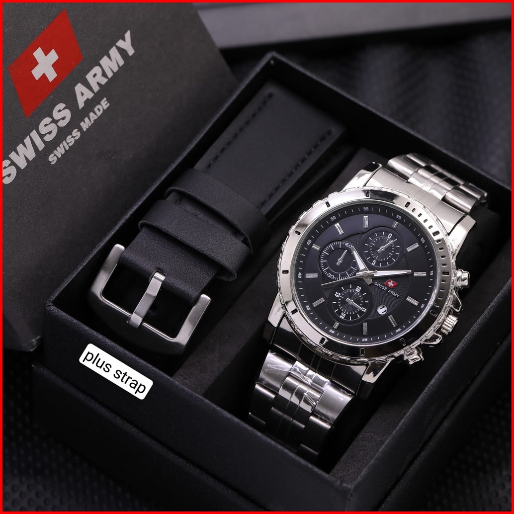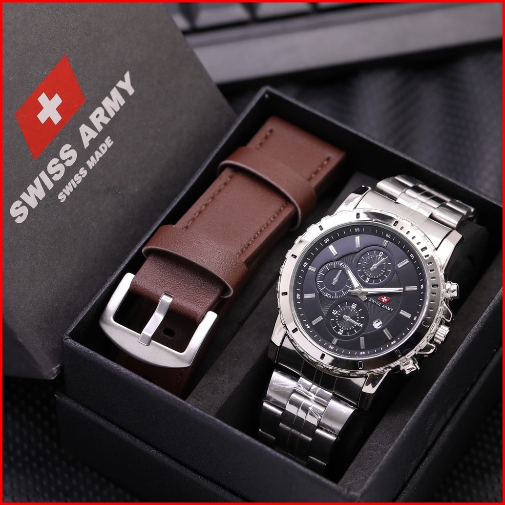 Ready Jam Tangan Pria S359a Tanggal Aktif Rantai Stainless Free Box Ori Tali Kulit Batrai