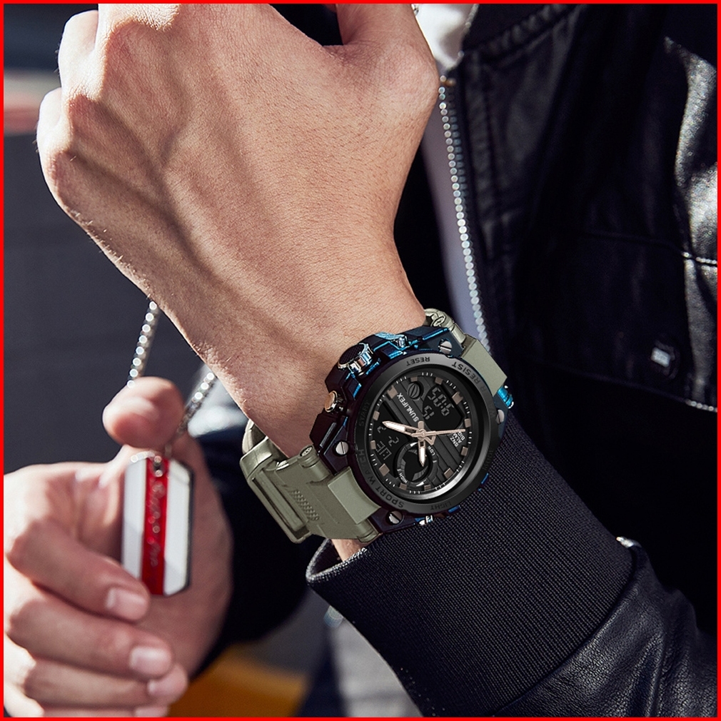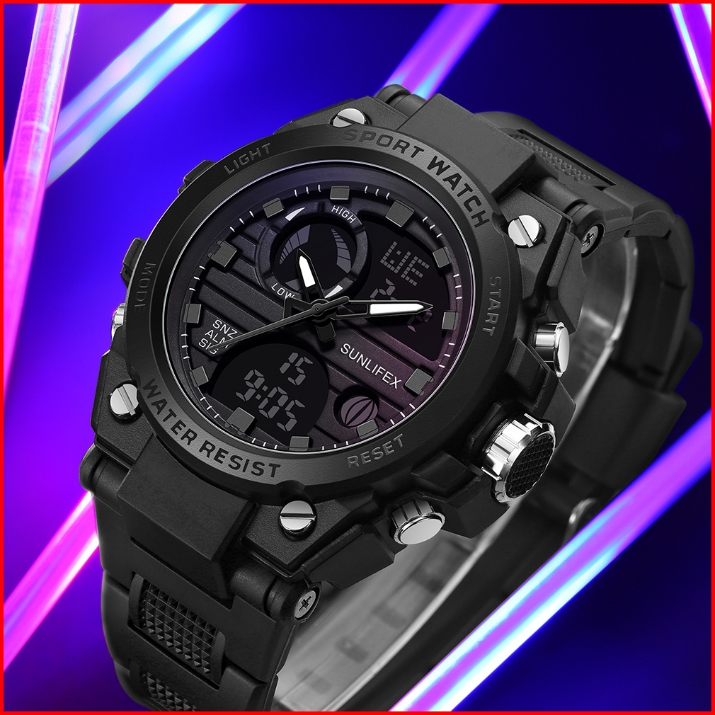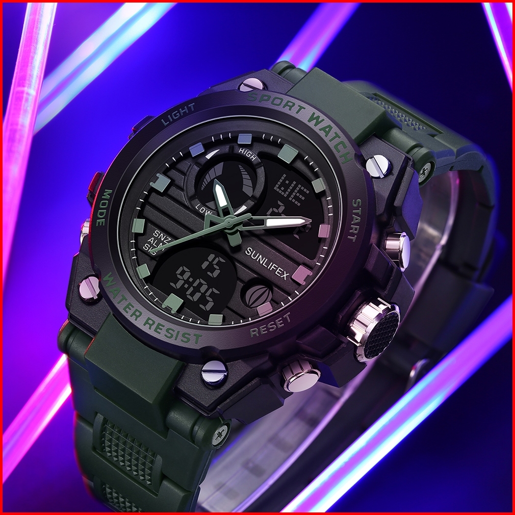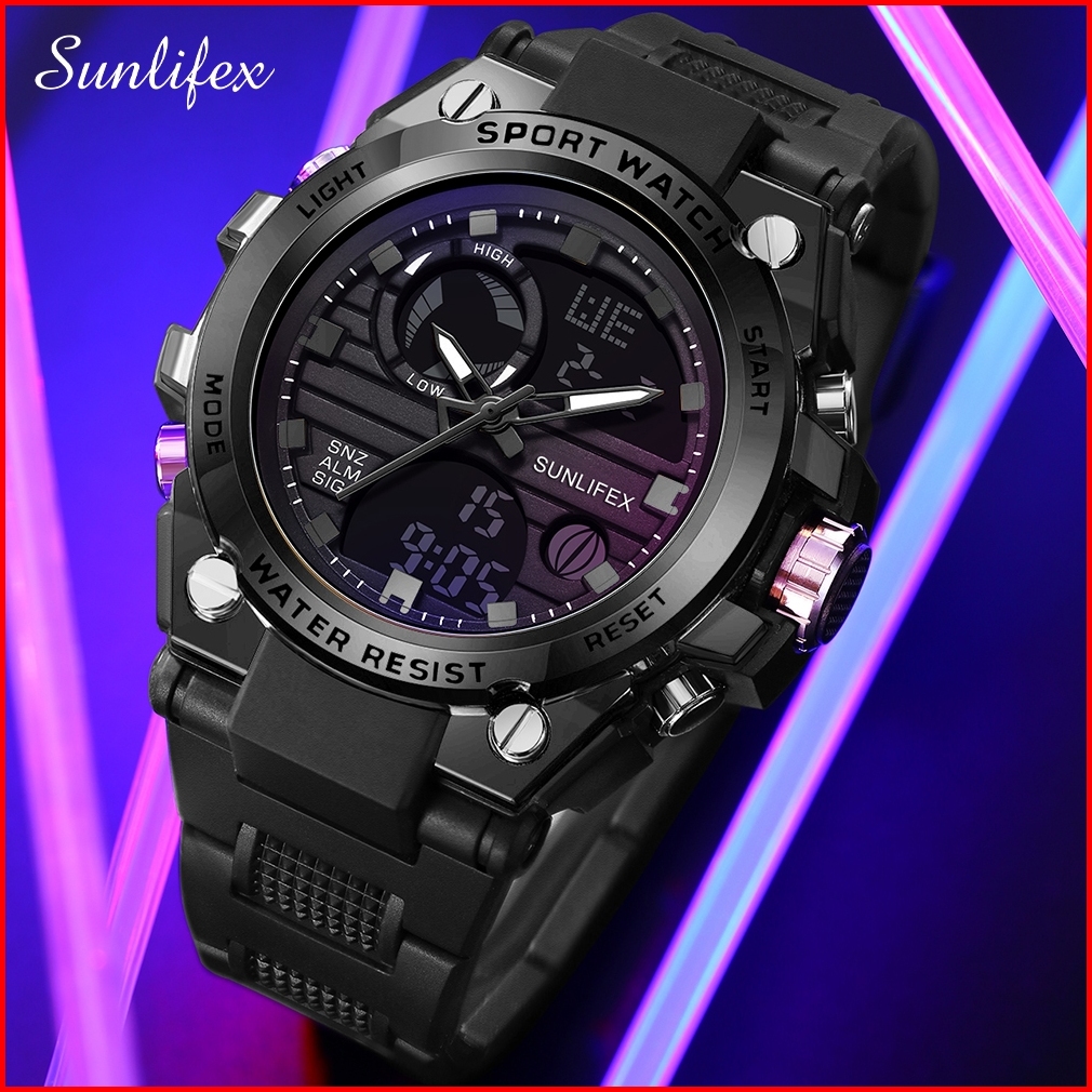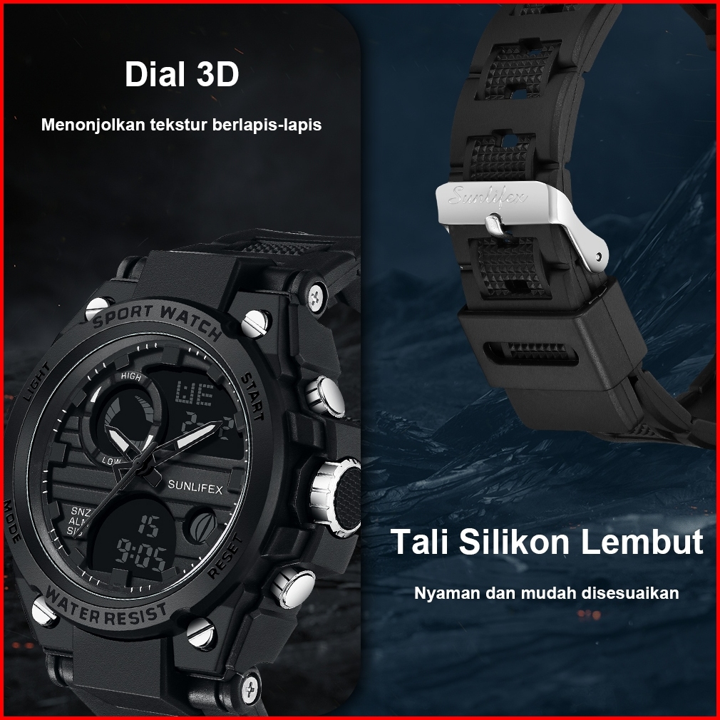 Sunlifex Jam Tangan Pria Digital Analog Olahraga Tali Silikon Luminous Multifungsi Jam Tangan Cowok