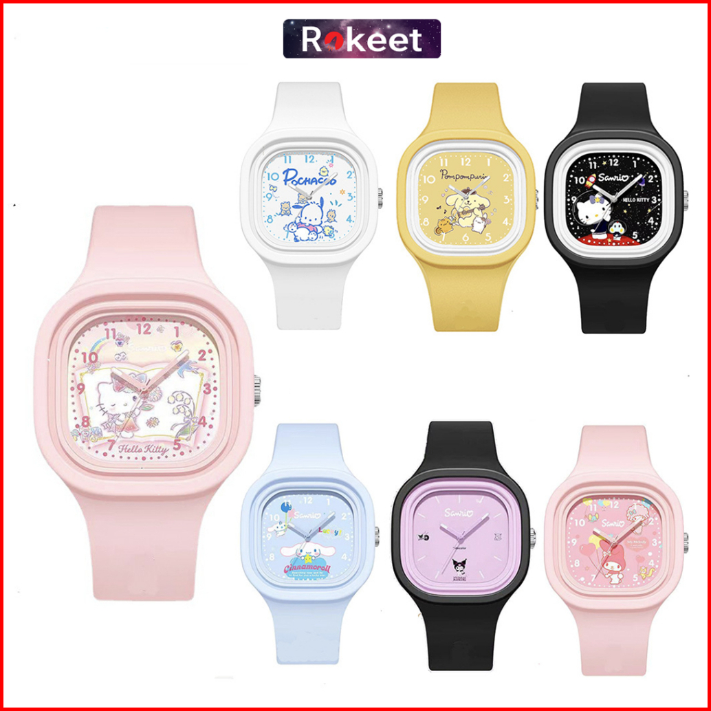 Rokeet Jam Tangan Rubber Analog Karakter Lucu Kuromi Cinnamoroll Sanrio Wanita Anak Perempuan