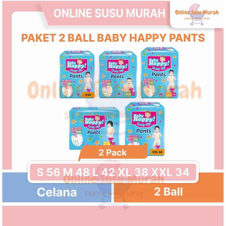 BABY HAPPY PAKET 2 BALL PANTS M48 L42 XL38 POPOK CELANA M 48 L 42 XL 38 MURAH JUMBO