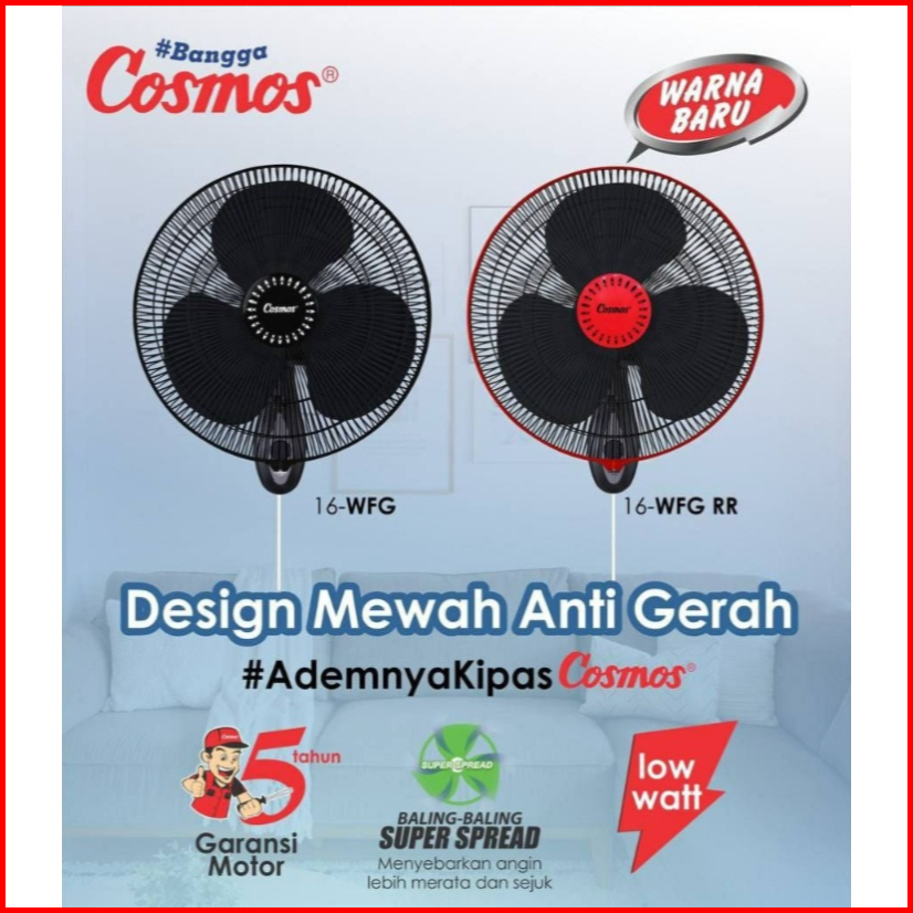 Cosmos Kipas Angin Dinding Remote Wall Fan 16-wfg 16 Wfg 16wfg 16 Wfgr Garansi Resmi