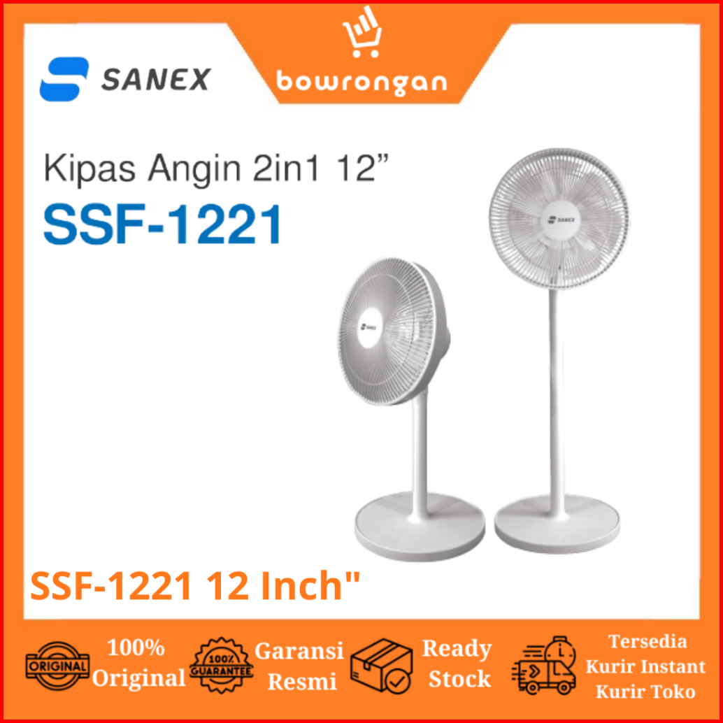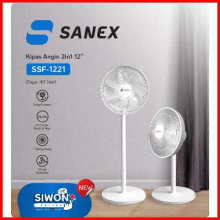 Sanex Standing Fan Kipas Beridi 12 Inch 3 Speed Low Watt 2in1 Ssf-1221