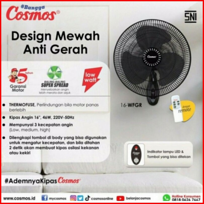 Cosmos Kipas Angin Dinding Remote Remot Wall Fan Remote 16 Inch 16 16-wfcr Wfgr